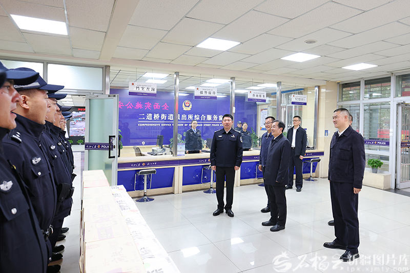 10月5日,自治区党委书记、兵团党委第一书记、第一政委陈小江看望慰问基层政法干警。这是陈小江在乌鲁木齐市公安局二道桥街道派出所,看望慰问基层政法干警,向节日期间坚守岗位的一线干部职工致以亲切问候。天山网-新疆日报记者 崔志坚 摄