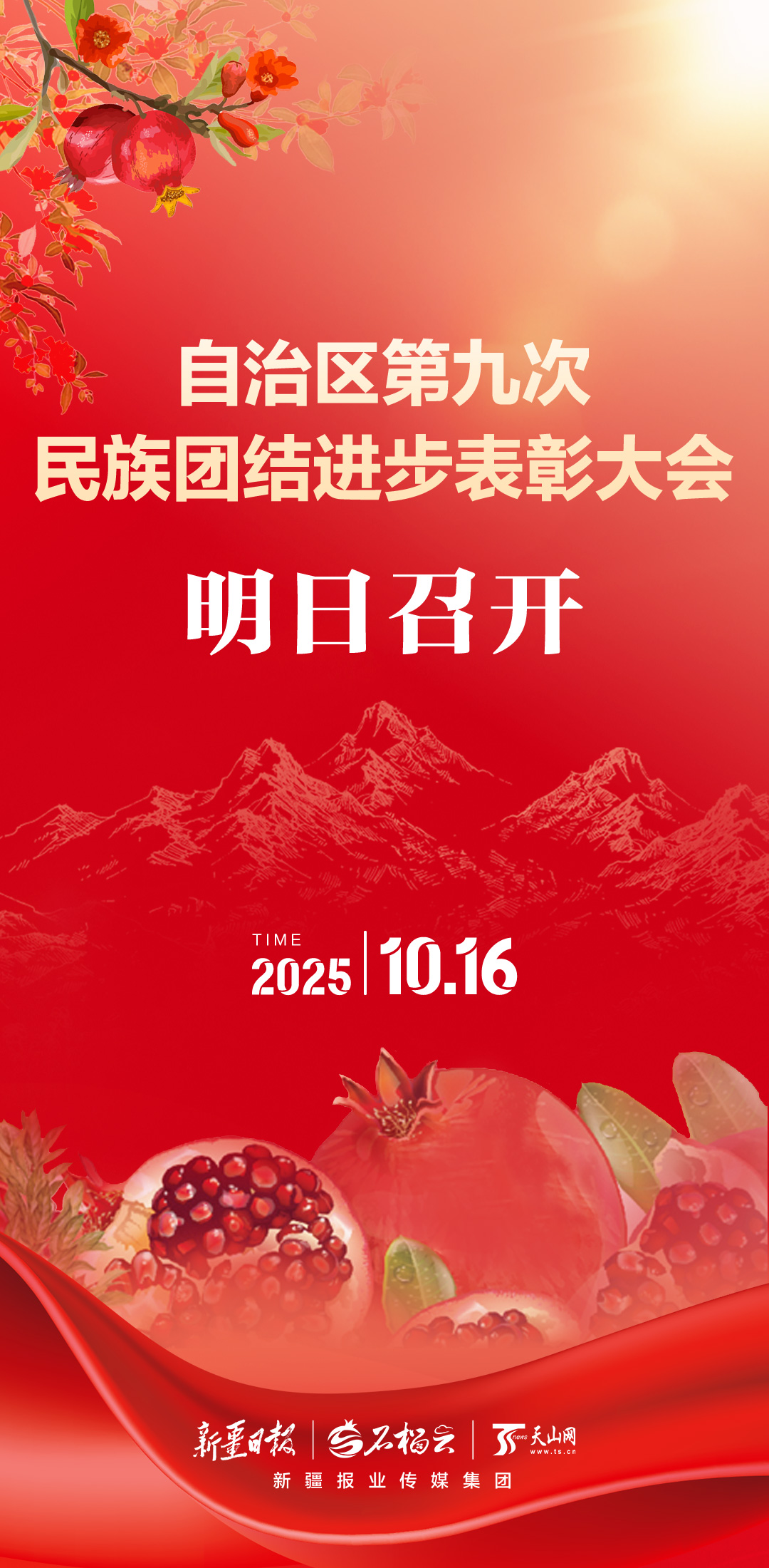 天山网-新疆日报讯(记者李嘉妮报道)自治区第九次民族团结进步表彰大会将于10月16日召开。大会将对近年来为新疆铸牢中华民族共同体意识、推进民族团结进步事业作出突出贡献的模范集体和模范个人进行表彰。
