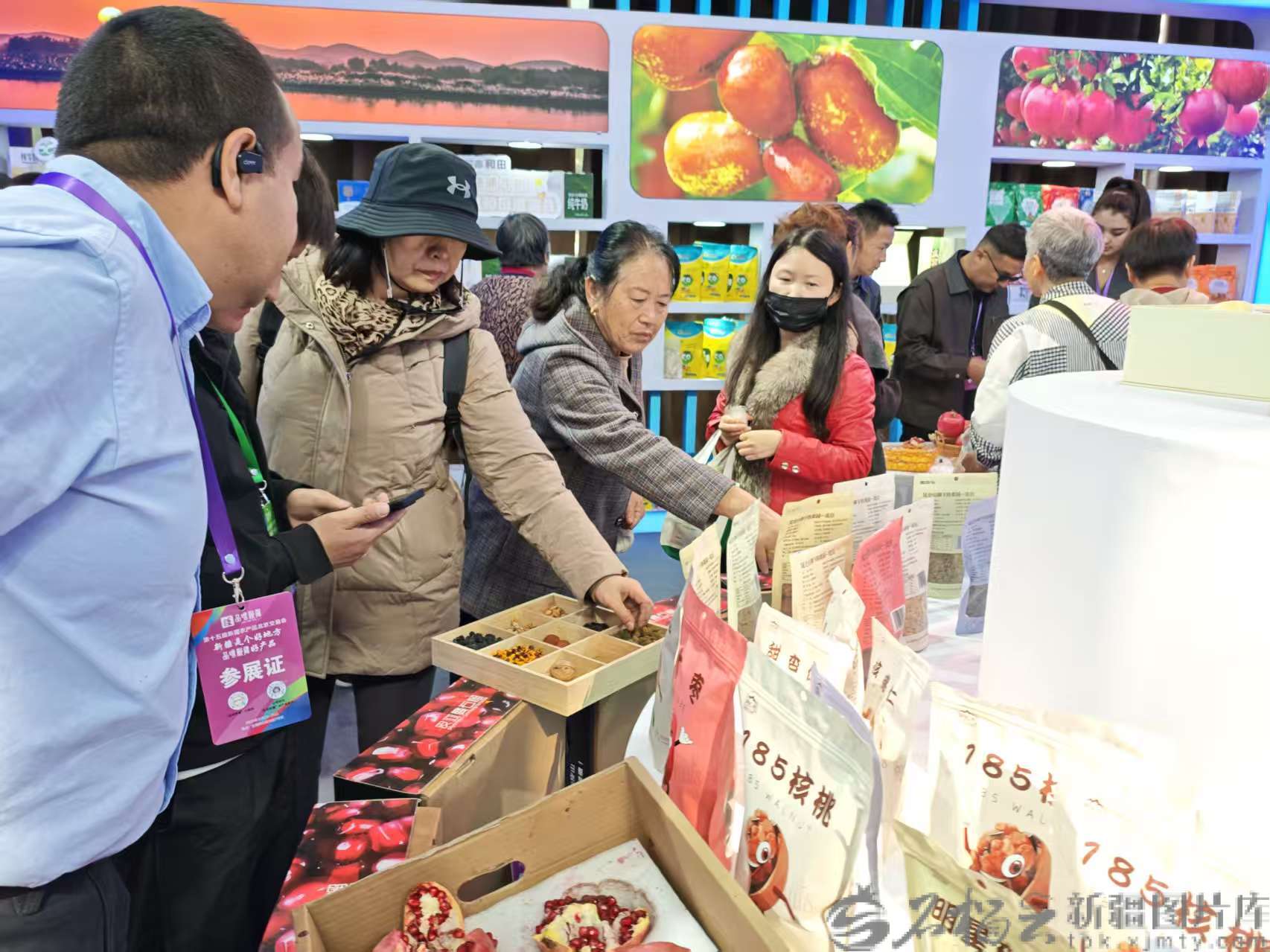 天山网-新疆日报讯(记者刘毅摄影报道)10月26日,新疆农产品北京交易会进入第二天,活动现场购销两旺,延续了首日的热闹场景。交易会首日,已有近30家企业达成合作协议,现场签订各类农产品采购加工合作订单5.24亿元,线下销售各类农产品近1000万元。