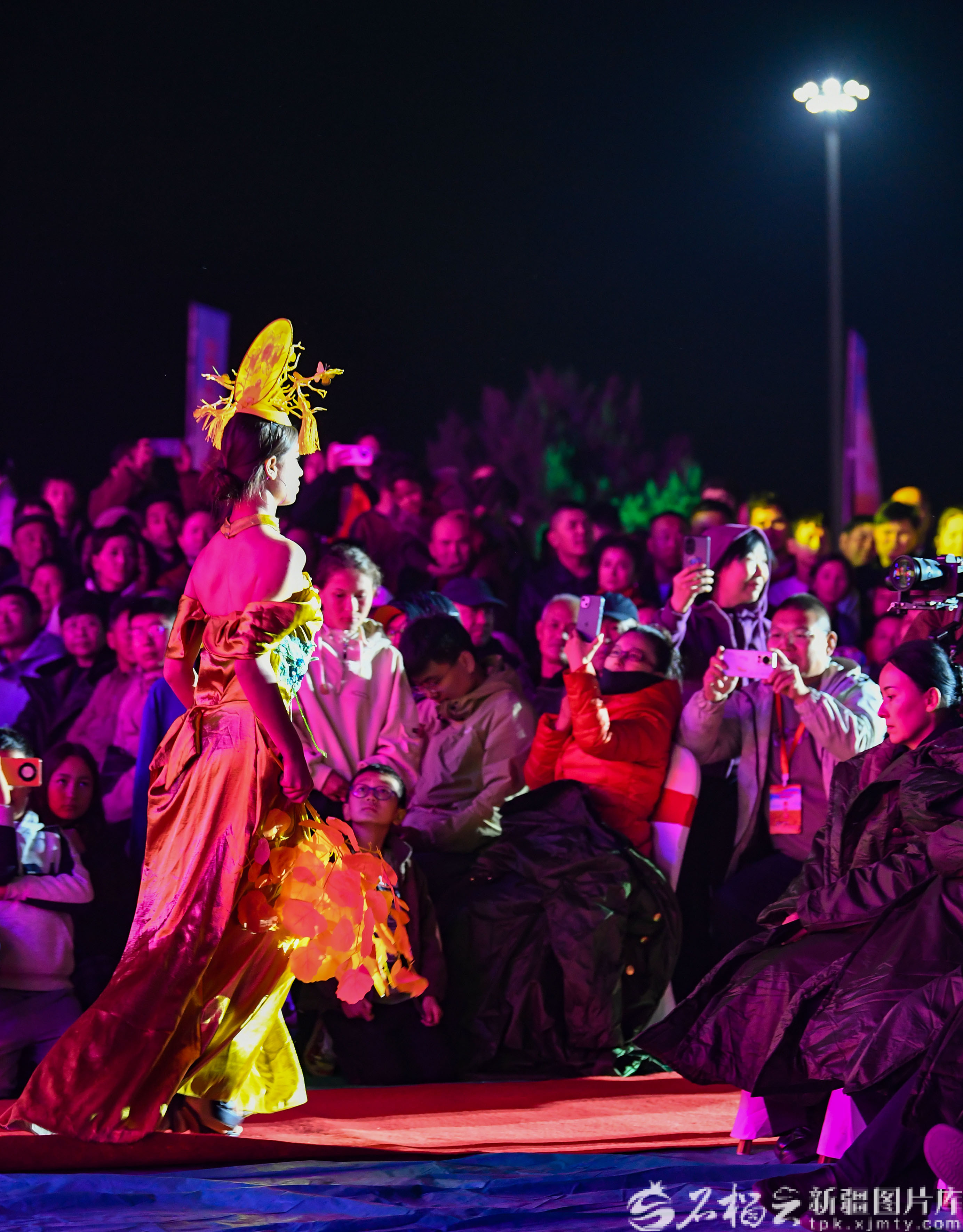 10月25日晚,第六届新疆喀什丝路文化胡杨节。游客在律动刀郎音乐节现场观赏胡杨元素时装秀表演。