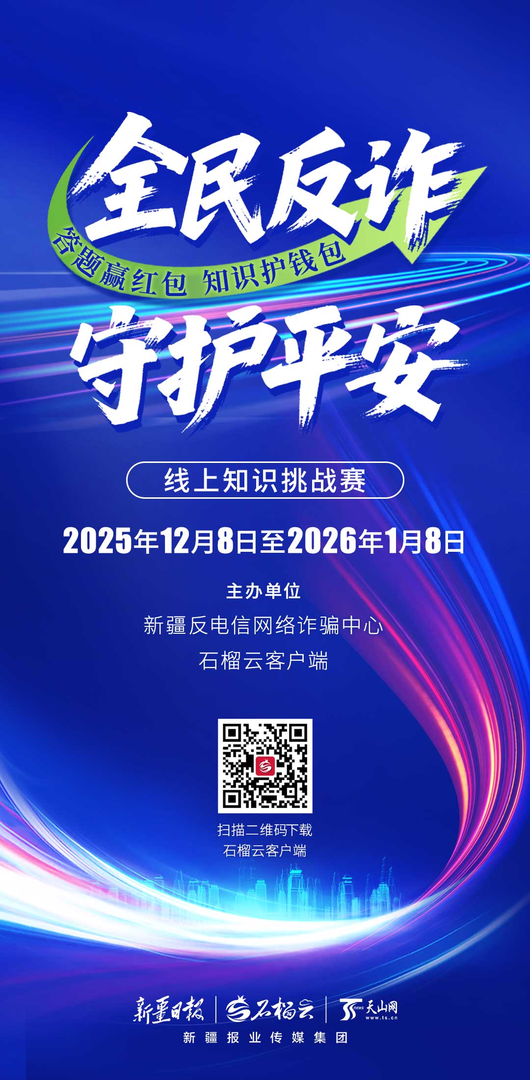此次挑战赛由石榴云客户端携手新疆反电信网络诈骗中心共同打造,旨在强化全民反诈意识,为大家的钱袋子加上一把坚固的安全锁。