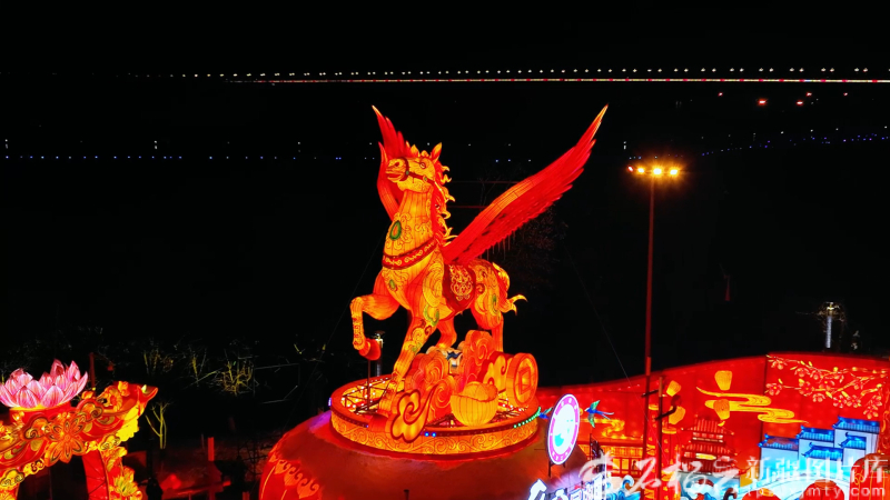 (9)1月21日—3月31日,第40届中国·秦淮灯会暨第三届伊犁河灯会举行,主灯“盛世新春”高15米,以灵动的马为核心造型。展区共分为“天马贺岁”“福运满园”“双城同庆”等六大主题,造出“人随灯走、灯随人动”的沉浸式体验。