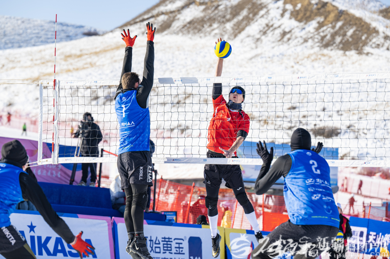 1月22日,在阜康市天山天池国际滑雪场,“一带一路·丝绸之路”行2026年中国国际雪地排球邀请赛比赛现场。何龙摄