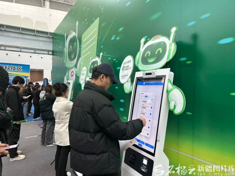 3月13日,在自治区2026年高校毕业生春季招聘大会暨全国城市联合招聘高校毕业生专场活动现场,求职者运用AI求职一体机。天山网-新疆日报记者 赵春华摄