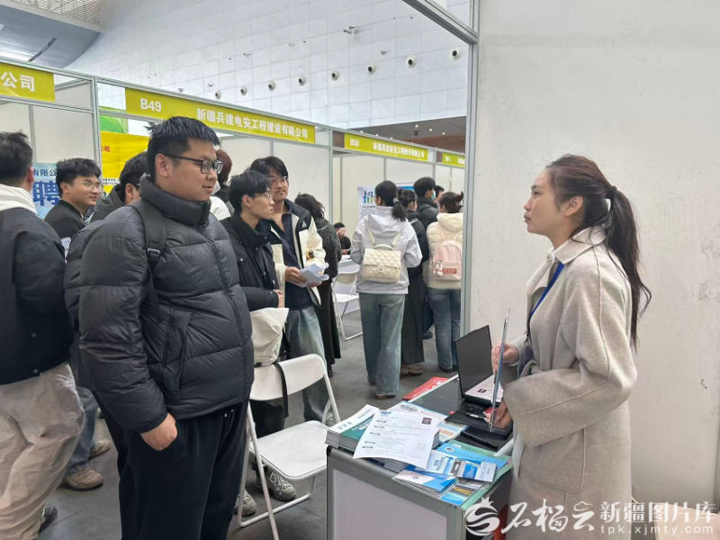 3月13日,在自治区2026年高校毕业生春季招聘大会暨全国城市联合招聘高校毕业生专场活动现场,求职者和用人单位交流。天山网-新疆日报记者 赵春华摄