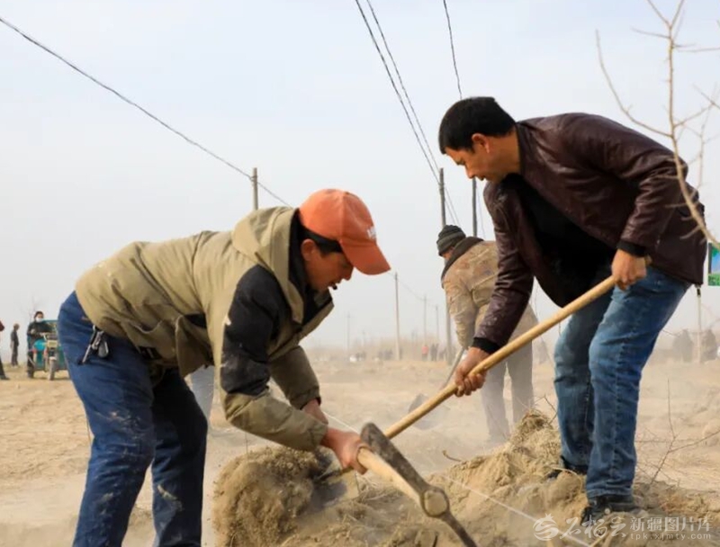 春季植树正当时,群众在于田县中药材种植示范基地周边植树。 阿依奴尔·艾司卡尔 摄