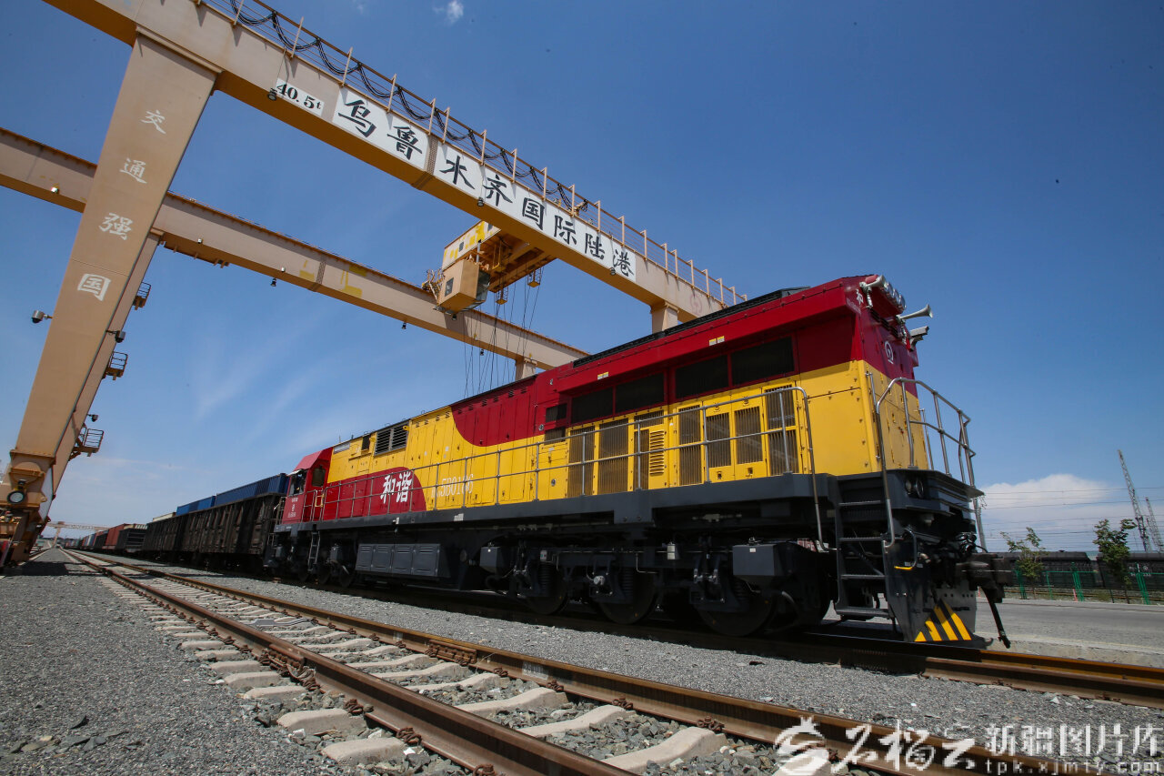 一列货运班列驶出乌鲁木齐国际陆港区(资料图片)。石榴云/新疆日报记者 韩亮摄