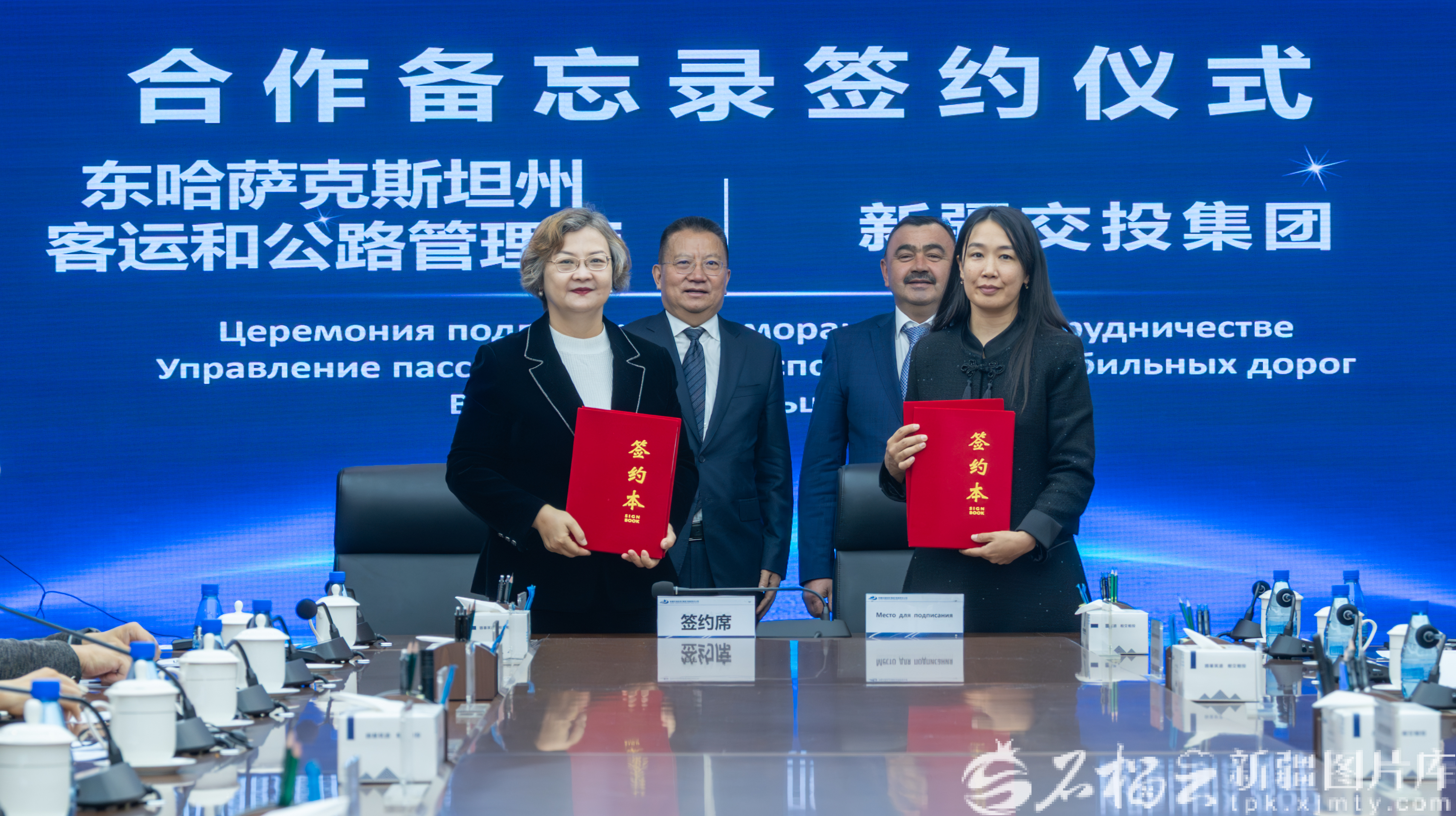 4月3日上午,东哈萨克斯坦州客运和公路管理厅与新疆交投集团正式签署合作备忘录后合影。新疆交投集团供图