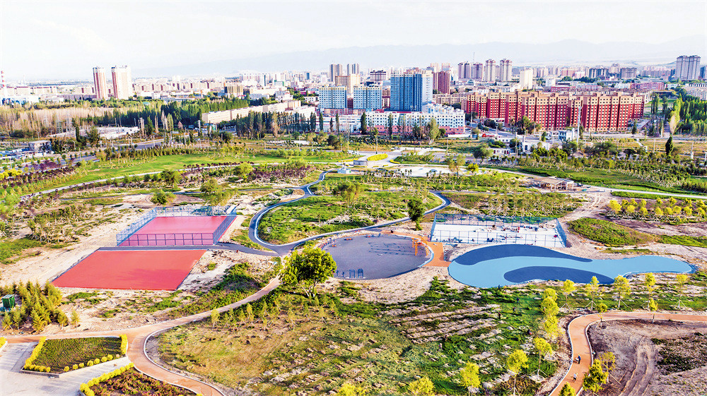 该公园位于博乐市北郊,占地面积15.6万平方米,建设球类场地4个(篮球场、门球场、羽毛球场、多功能运动场地)、健走步道5.5公里,总投资1250万元。 (记者楠登 摄)