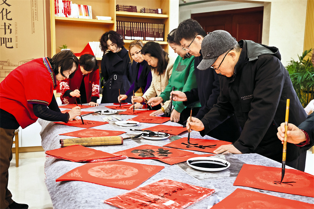 当日,州博物馆联合州书画院(美术馆),开展 “翰墨迎新春 文博送福韵” 活动。大家一起书写春联与“福”字,红宣铺展、墨香四溢,在中华优秀传统文化的浸润中传递新春祝福。