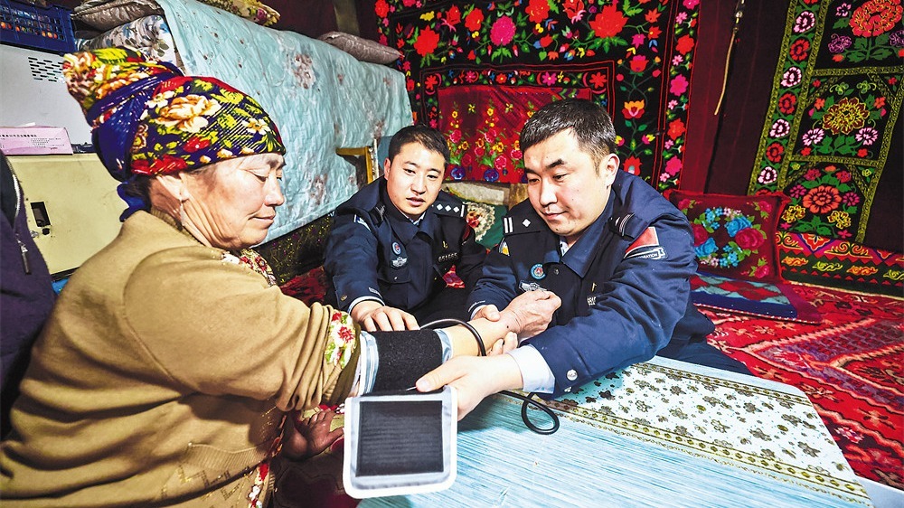 游客在博乐市青得里镇阿里翁白新村《时光小巷》感受时光记忆