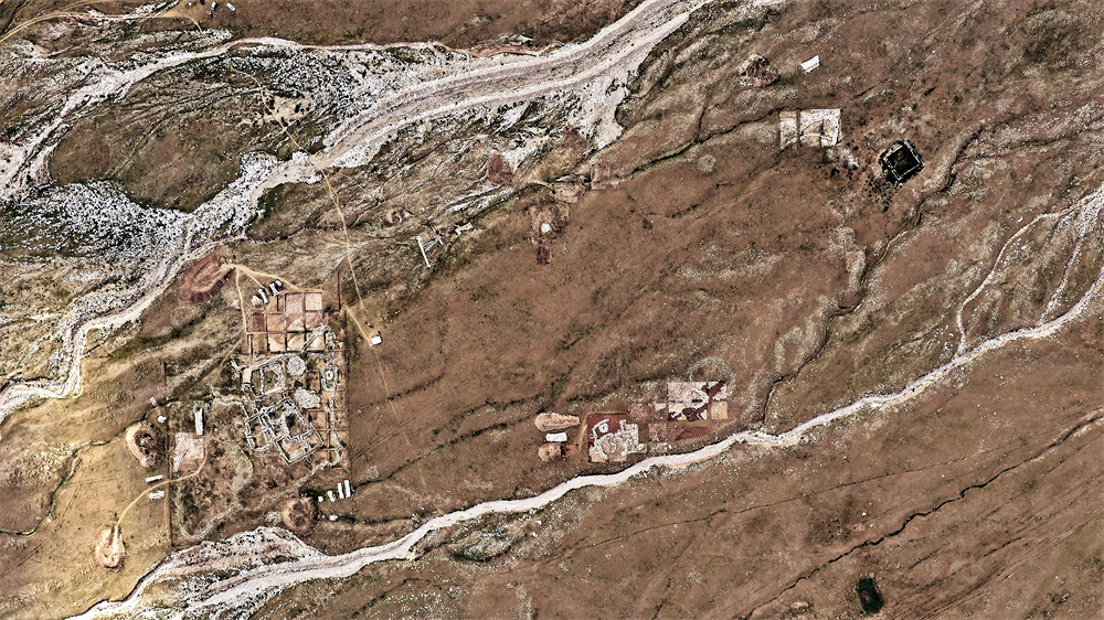 在温泉县东北约40公里的阿拉套山南麓,呼斯塔草原如一块翡翠铺在大地上。在这片草原上,留存着一座距今约3600年、设施较为完善的青铜时代聚落遗址——呼斯塔遗址。