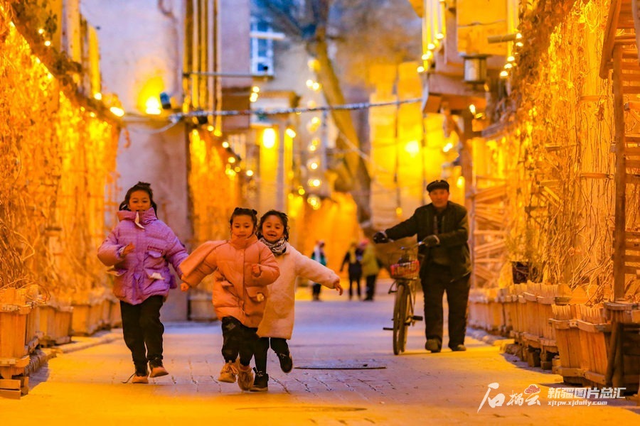 2023年12月31日,小朋友在喀什古城景区追逐玩耍。天山网-新疆日报记者 蔡增乐 摄