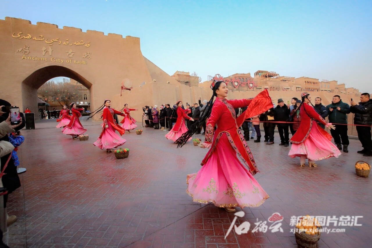 2024年1月1日,演员在喀什古城入城仪式上表演节目。天山网-新疆日报记者 蔡增乐 摄