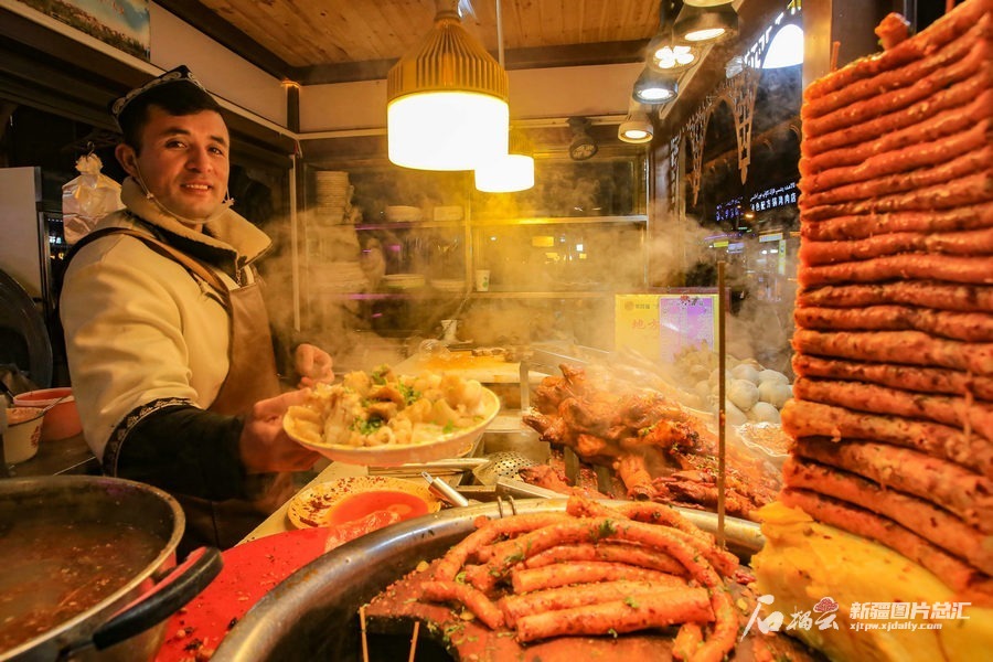 2024年1月3日,喀什古城景区汗巴扎美食街,一位厨师正在制作美食。天山网-新疆日报记者 蔡增乐 摄