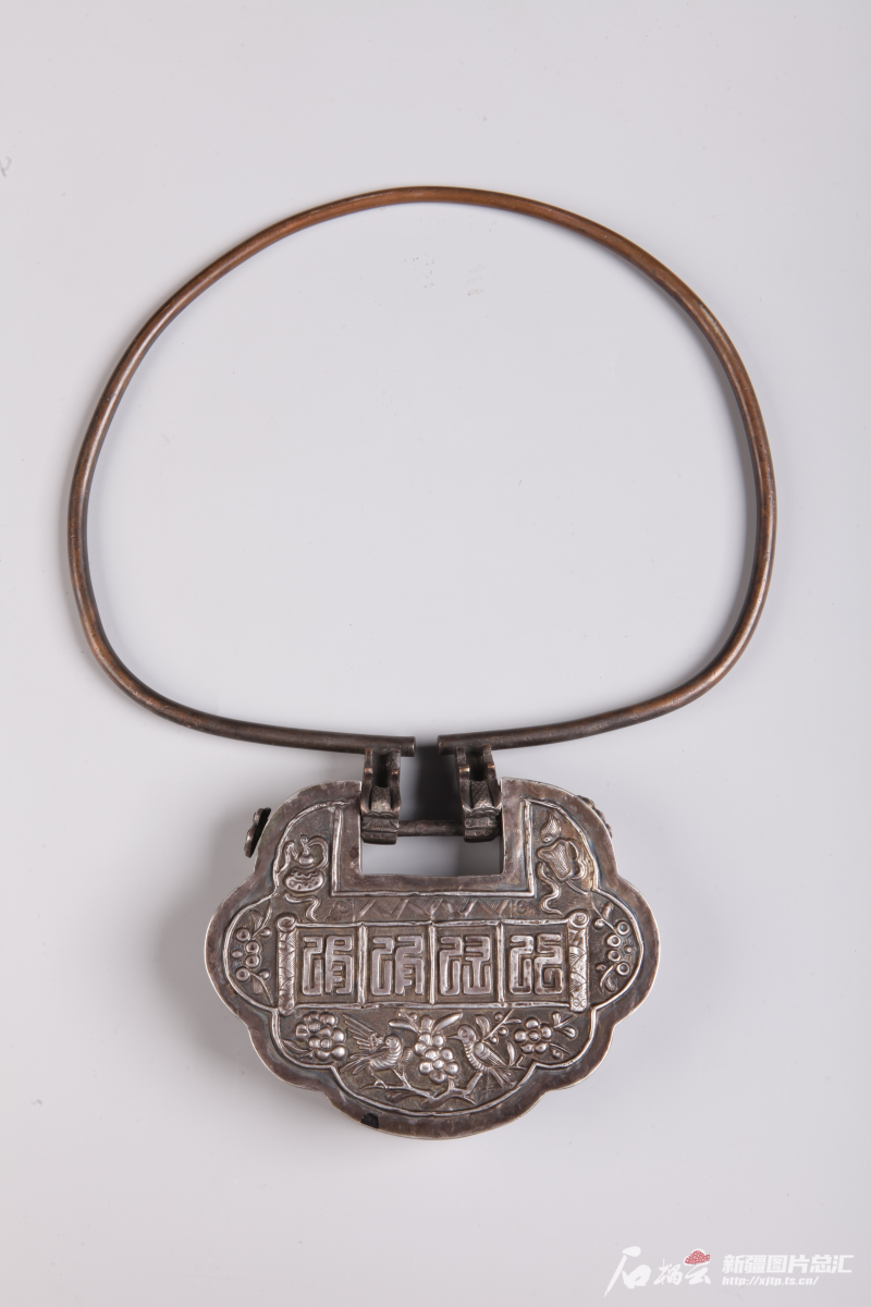阿克苏地区博物馆馆藏的清代项锁,上有“暗八仙”(八仙法器)纹饰。陈龙摄