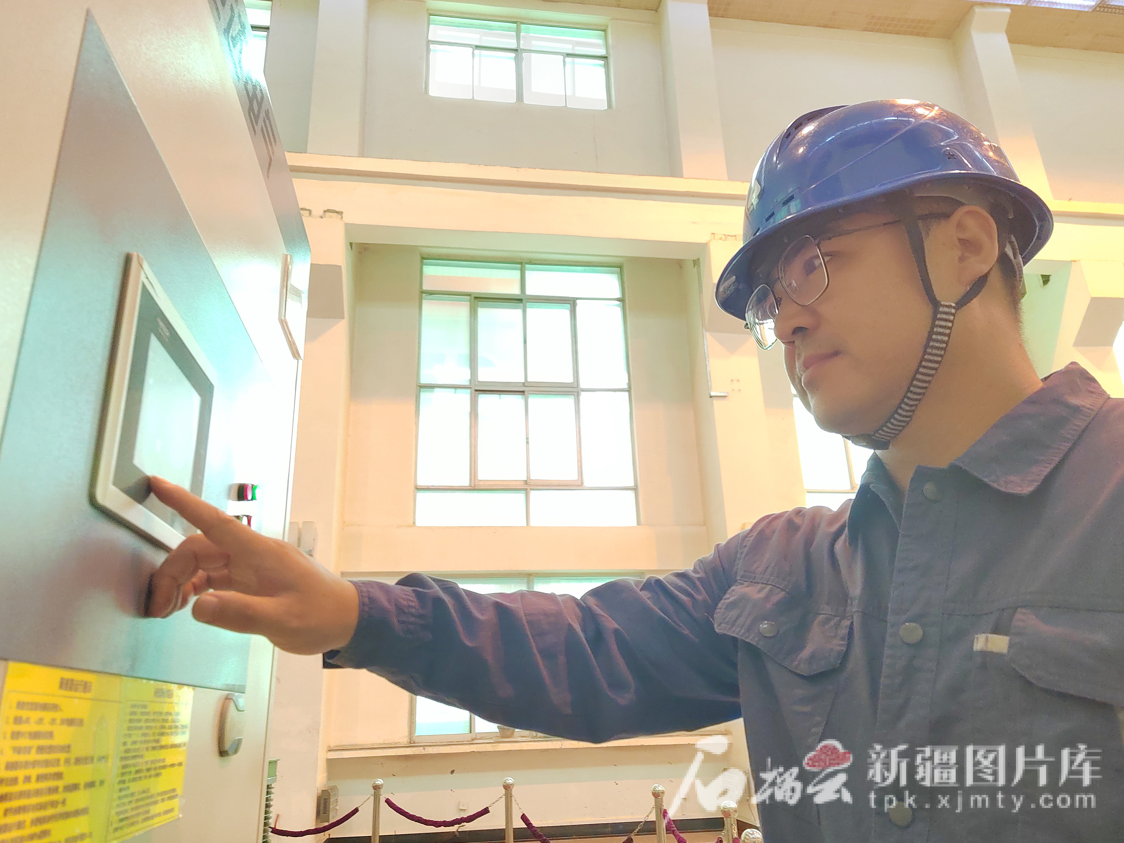 8月6日,工作人员在乌鲁瓦提水电厂内操控设备。