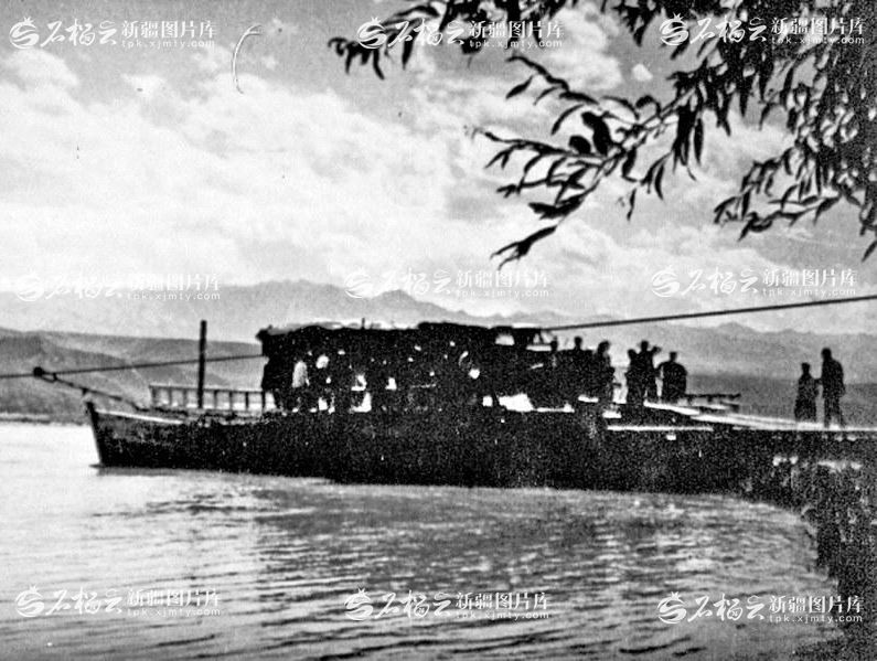 上世纪50年代的野马渡渡口渡船。图片由新疆图片库提供