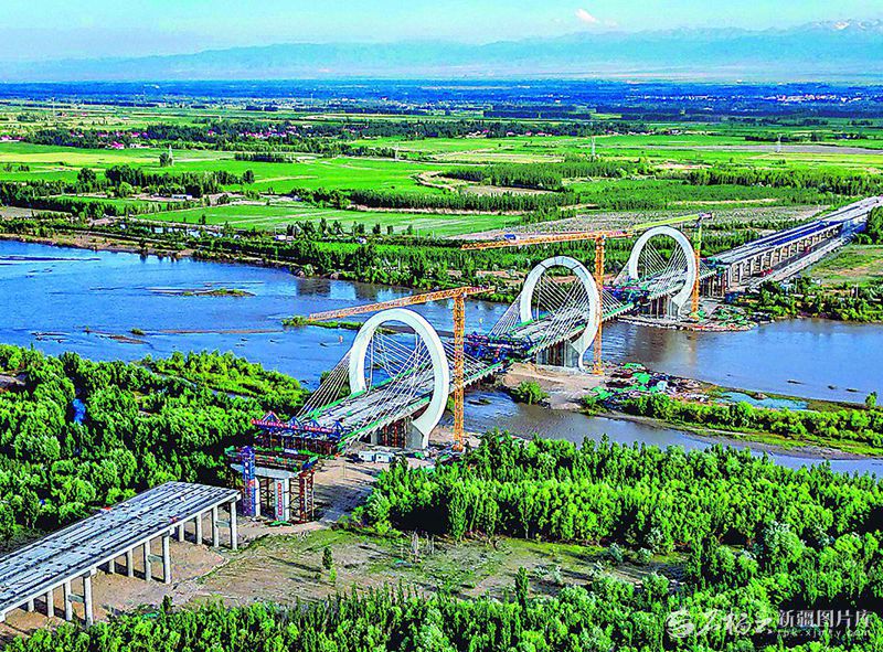 伊犁河三桥建设现场(5月21日无人机摄)。天山网-新疆日报记者蔡增乐摄
