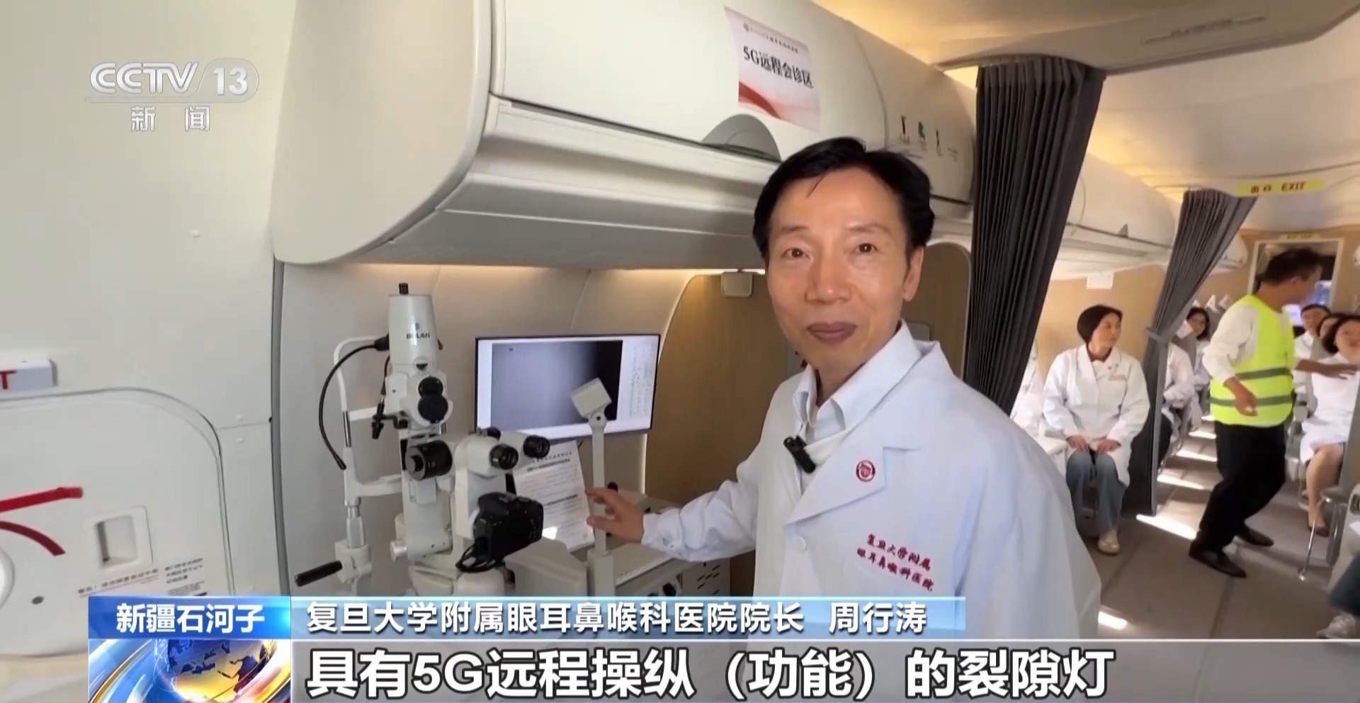 复旦大学附属眼耳鼻喉科医院院长 周行涛:这个具有5G远程操纵功能的裂隙灯,在上海的诊室里面可以来操控。