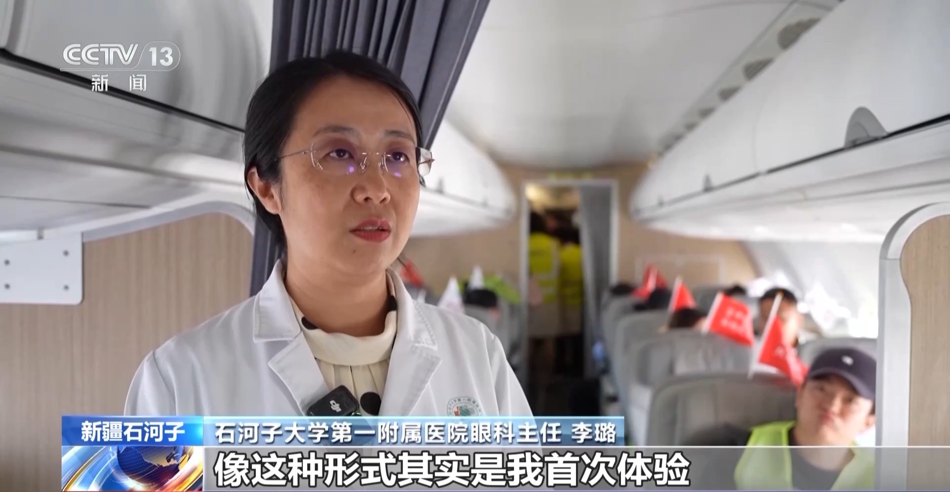 石河子大学第一附属医院眼科主任 李璐:像这种形式其实是我首次体验。通过今天的义诊,其实将义诊更专业化了,服务老百姓也是更实际化了,飞机上这些设备可以做到精准诊断。