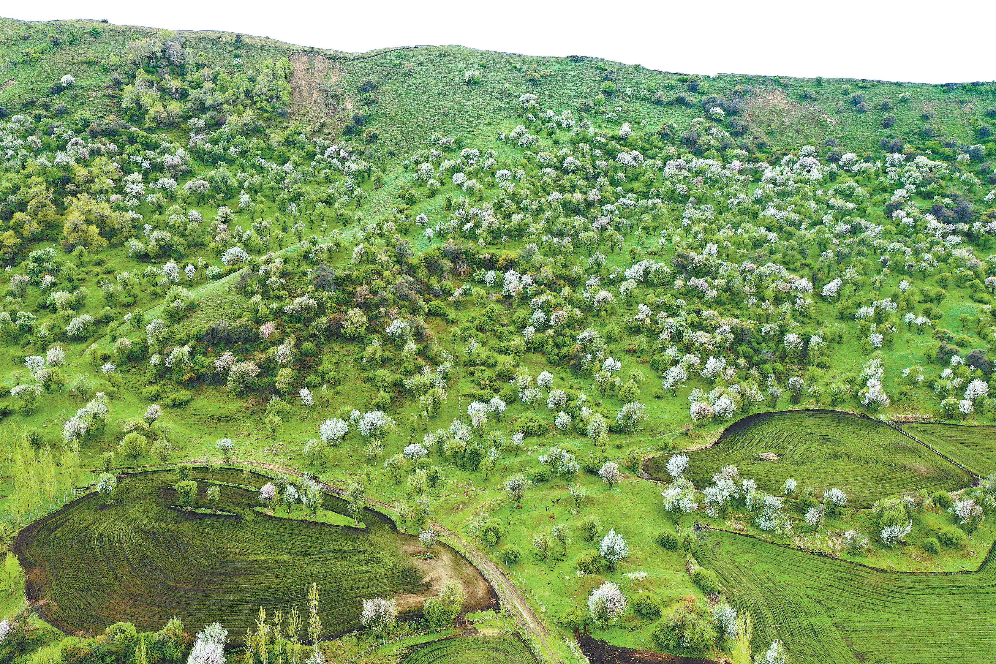 巩留县大莫乎尔沟新疆野苹果花期。(受访者供图)