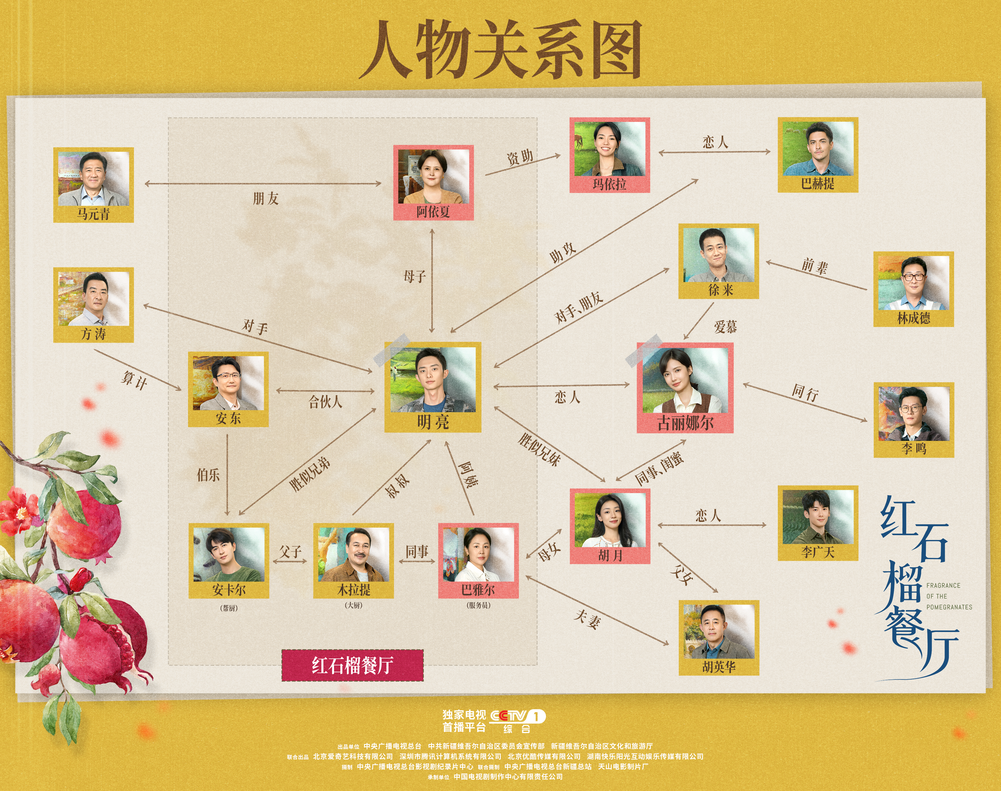 今晚CCTV-1黄金档开播!一张图带你解锁《红石榴餐厅》全剧角色关系
