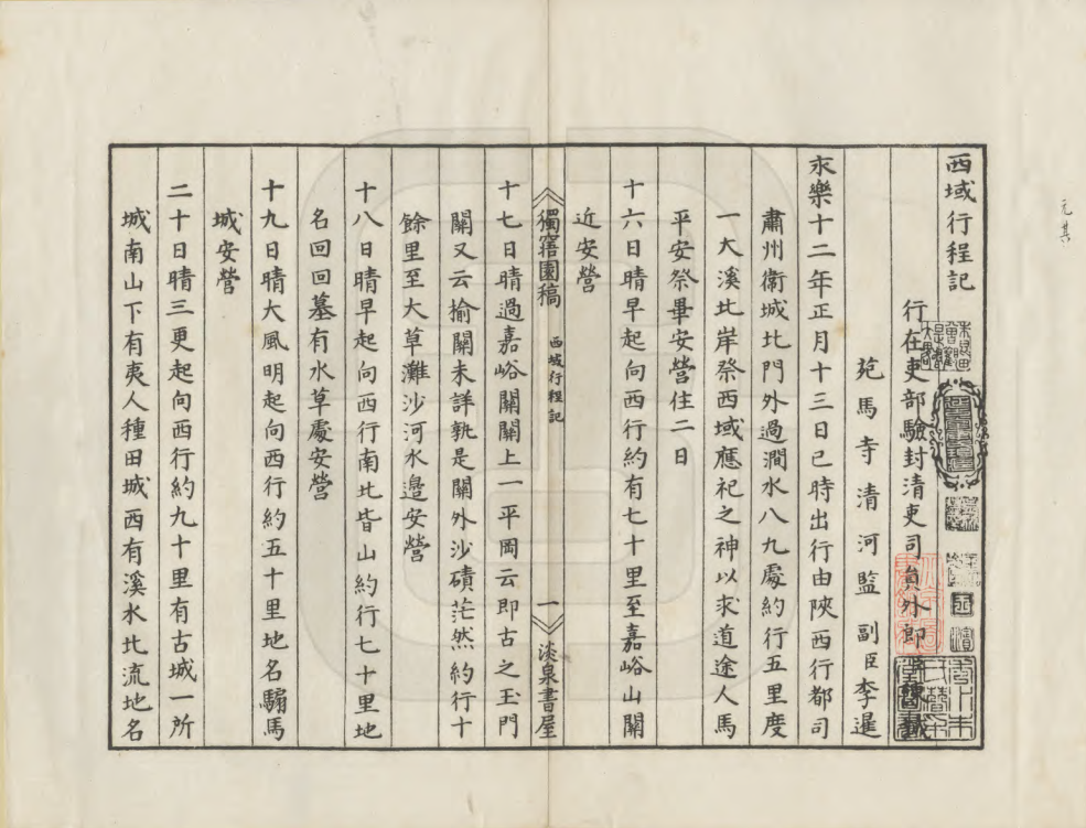 六百多年前,在郑和奉命七次乘槎南洋的同时,古老的丝绸之路上,陈诚一行亦带着皇朝使命数次踏上西行万里的征程,他们以足迹丈量山川,走过了水草丰美、人烟云集的繁荣城郭,也跨过了绝无人烟、路径粗恶的山脉、戈壁、原野和荒漠。路途虽然遥远艰险,初心却从未改变,他们带着对故乡的眷恋,对西域的畅想,五次远抚西域。“西域记”包含着这些使命和情感,其内涵必然是丰富而深刻的,它承载了中央政权“共享安福太平”的美好愿景和陈诚“协万邦之和”的光荣使命,展现了新疆这块沃土上文明交汇激荡的壮阔历史,以及多民族人民水乳交融的幸福生活。(作者系国家图书馆研究馆员)