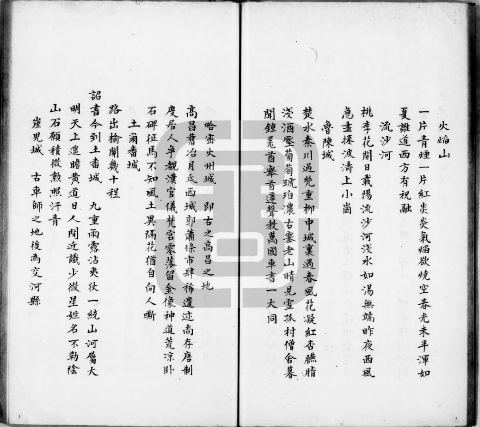 《西域行程记》作为行程日记,详述了使团某日行至某处安营及与各地酋长、头人交往互动的记录,如“某日……哈密遣人来接”、“某日……马哈木王遣人来接”、赛蓝头目、撒马尔罕“差人来接”等,使团所到之处,与各族群共同宴饮、贸易,如路经哈密,当地少数民族箪食壶浆前来欢迎:“灵凤景星争快睹,壶浆箪食笑相迎”(《哈密城(古伊州之地)》),这些记载成为各民族友好交往最直接的原始档案记录。西域人“绥服向化”“亦慕华风”,部分首领改用汉姓、学习礼仪,与汉人通婚,以及入华居住,显示了中华文化对西域的吸引力,以及西域对中原文化的主动接纳和深度融合。看到尚存的唐制以及争睹汉官风仪的当地居民,陈诚以“遗迹尚存唐制度,居人争睹汉官仪”(《哈密火州城(即古之高昌之地)》)的写实描写清晰地勾勒出中华文化在高昌故城影响力延续性的历史脉络。“梵宫零落留金像,神道荒凉卧石碑”(《哈密火州城》),“断壁悬崖多险要,荒台废址几春秋”(《崖儿城(古车师之地后为交河县)》),“(火州)城方十余里,风物萧条。昔日人烟惟多,僧堂佛寺过半,今皆零落”(《西域番国志》)则记叙了高昌、交河故城人口的聚居迁移、宗教的兴衰起落,再现了此地文化交融、文明汇聚的历史缩影。“春光未半浑如夏,谁道西方有祝融”(《火焰山》),用中华文化符号“祝融”去理解和命名西域地理奇观,则以一种文化视角的投射和建构,反衬和强化了中华文明的优越性与中心性,这些文献记载将西域从“化外之地”转化为“天下秩序”的一部分,加速了中华文化多元一体化进程,也为中原王朝塑造集体认知、理解和想象西域世界提供了权威的框架和内容。