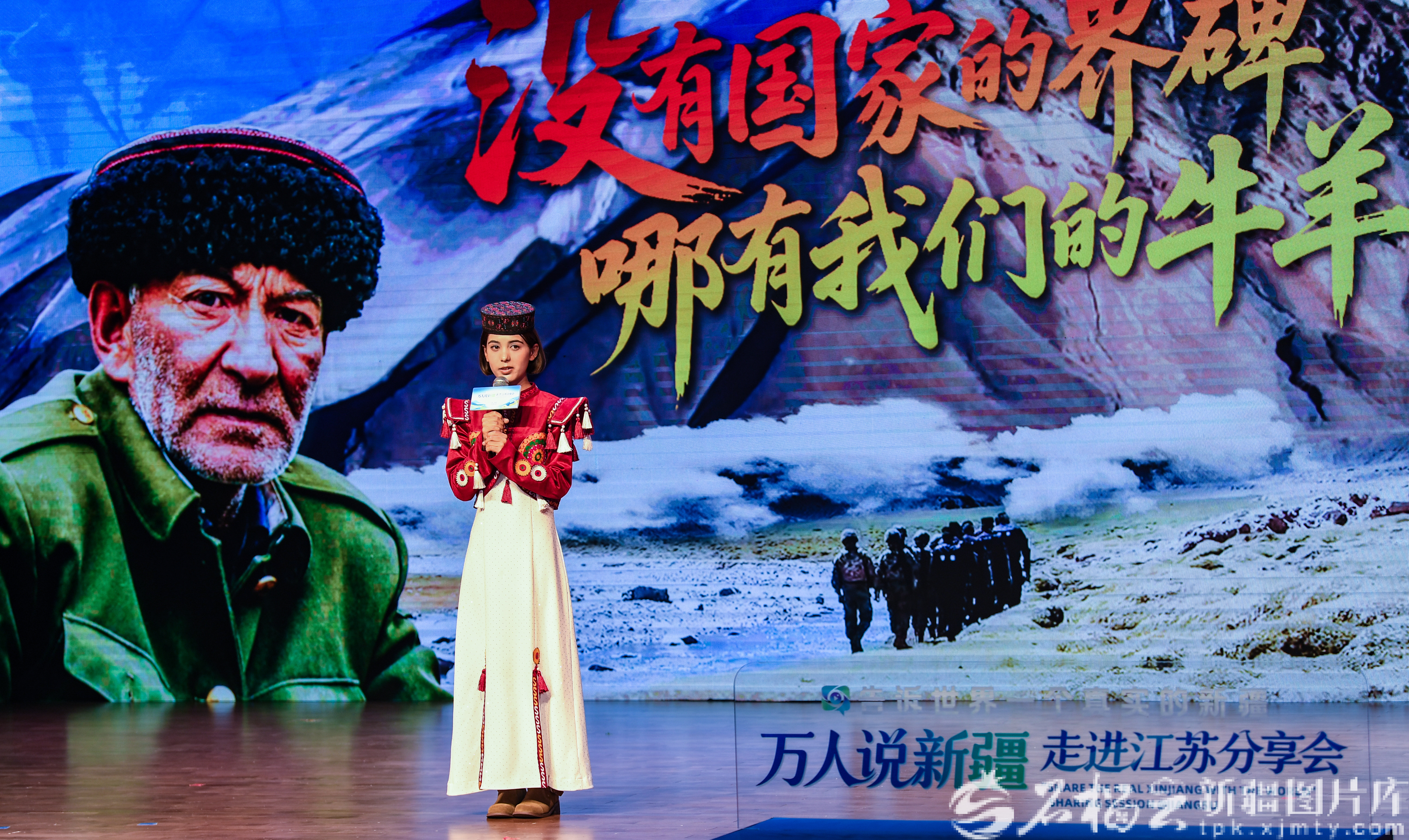 10月29日,在“万人说新疆”走进江苏分享会上,来自新疆警察学院在读大学生、“人民卫士”巴依卡·凯力迪别克孙女都尔汗·拉齐尼在讲述自己爷爷、父亲巡边护边的故事。