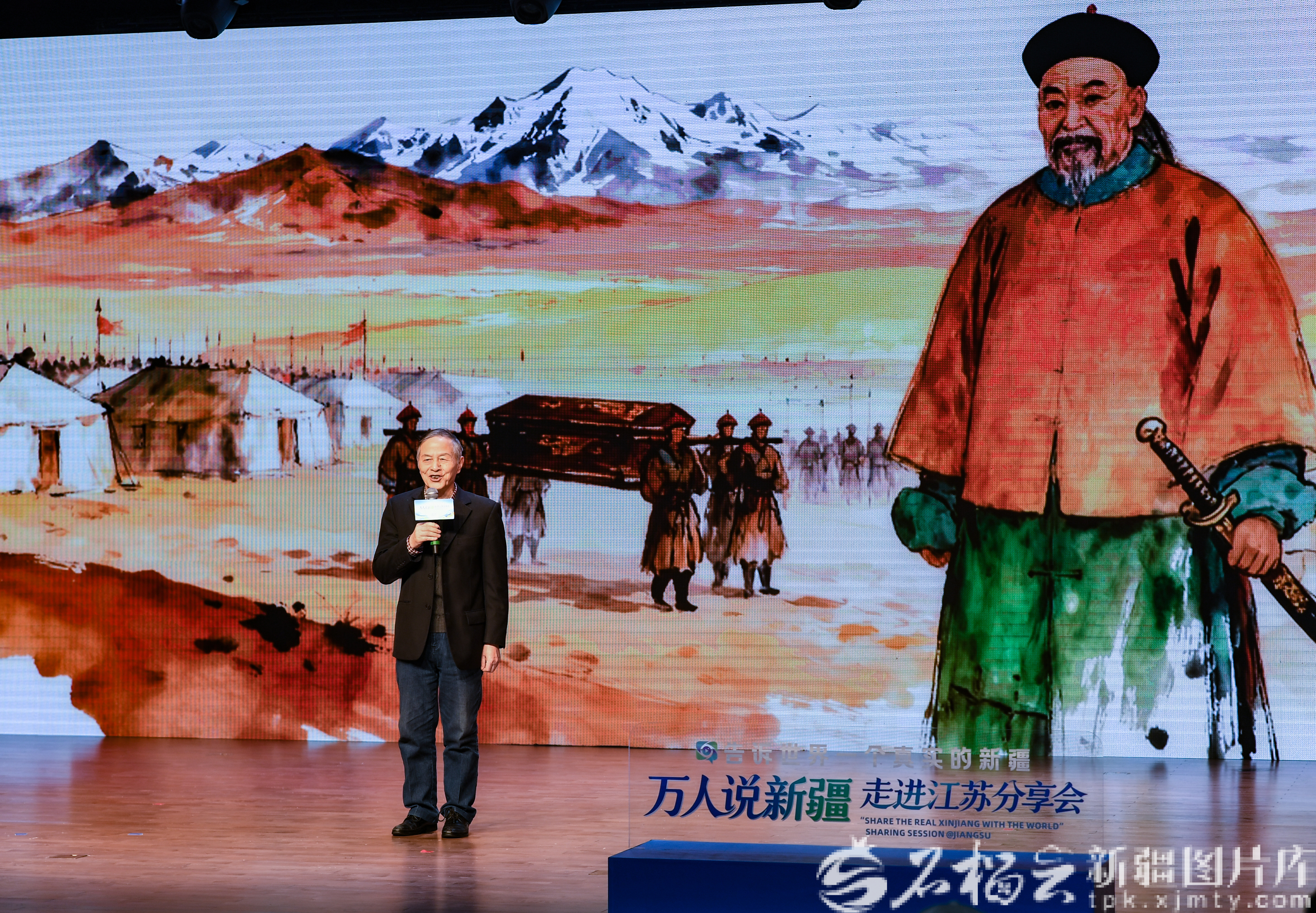 10月29日,在“万人说新疆”走进江苏分享会上,来自湖南省文史研究馆馆员、左宗棠五世外孙梁小进讲述左宗棠收复新疆的故事。