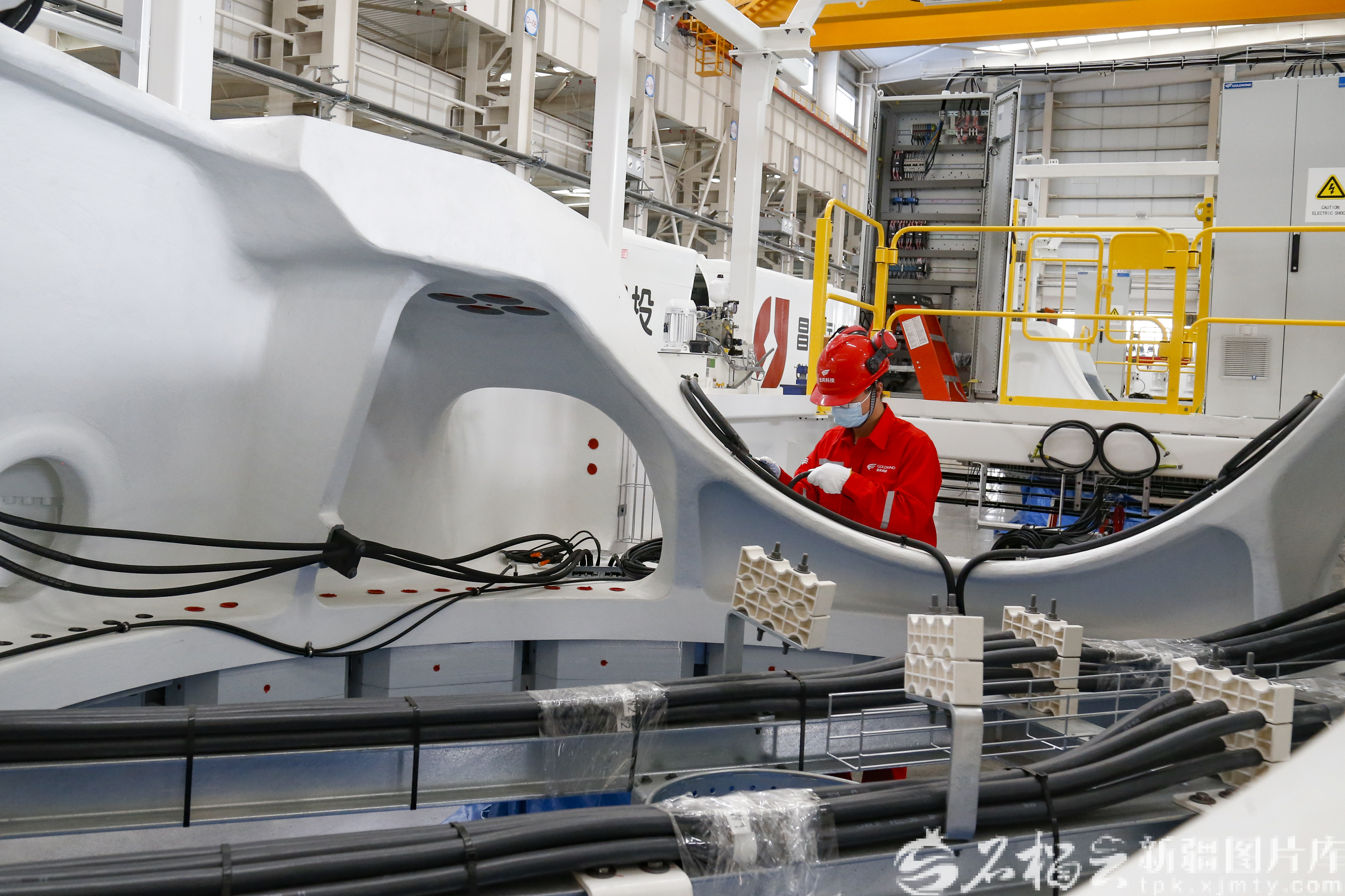 在金风科技达坂城产业基地,工作人员在对设备进行安装(资料图)。天山网-新疆日报记者 谢龙摄