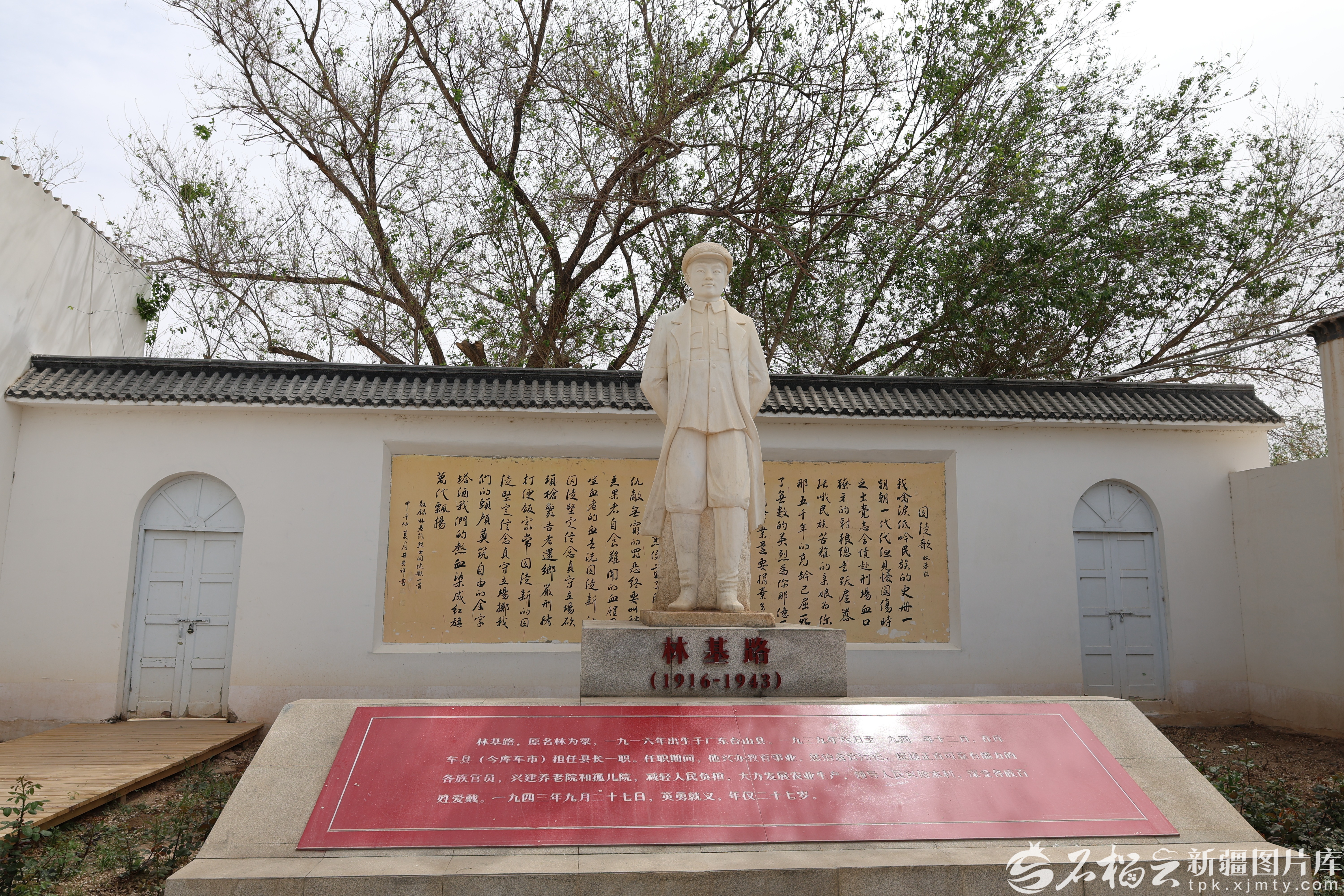 林基路烈士纪念馆前的林基路烈士雕塑。林基路烈士纪念馆供图