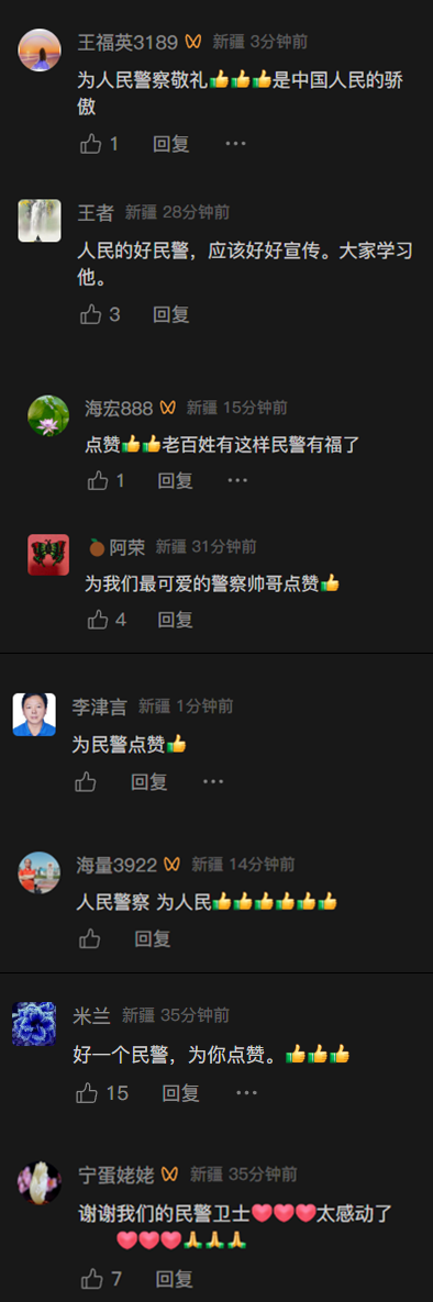 评论区网友们纷纷为民警点赞