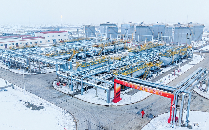 在吉木萨尔国家级陆相页岩油示范区页岩油联合站,示范区开采出来的页岩油集输至此处理(摄于12月8日)。张睿摄