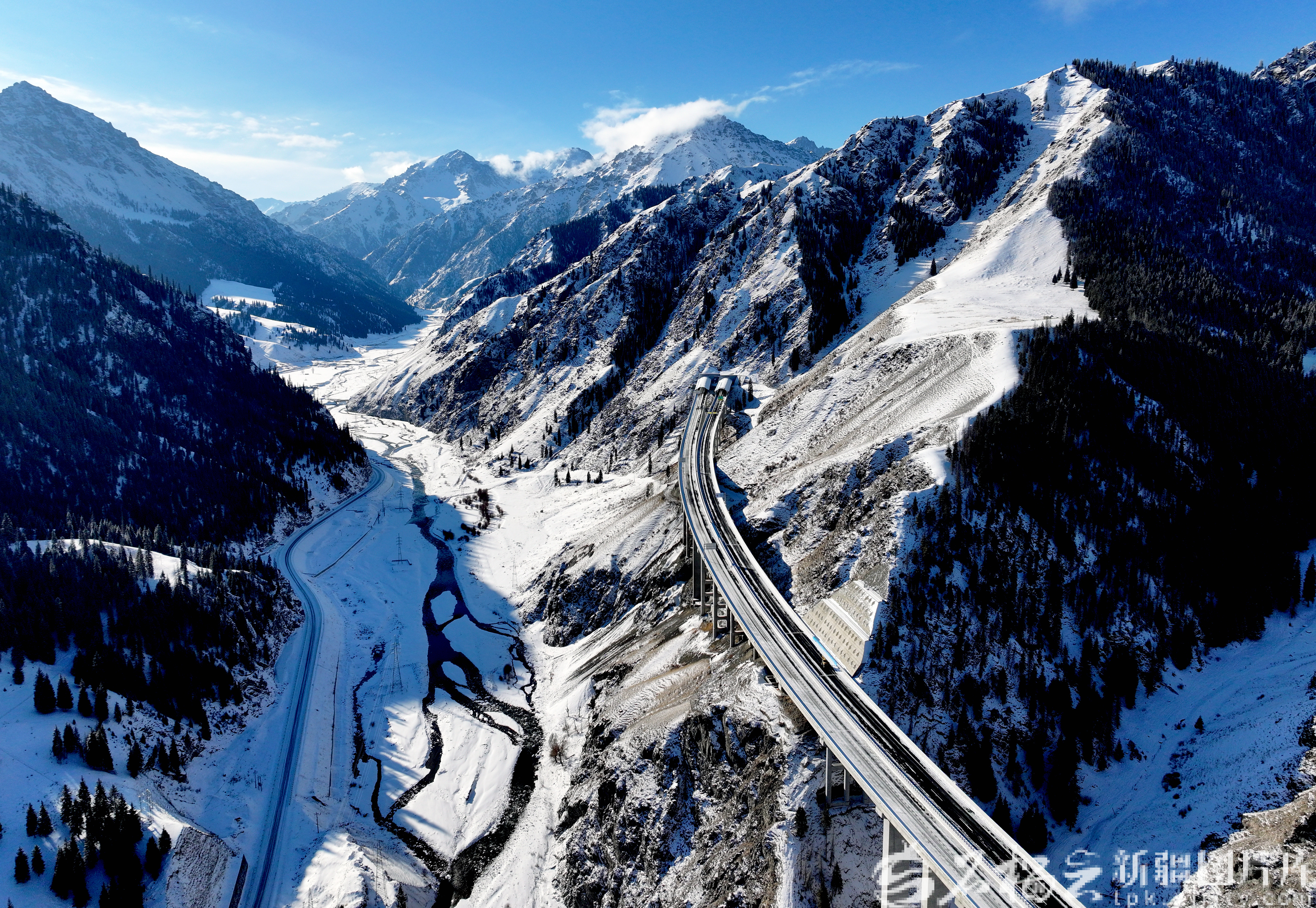 12月22日,乌尉高速公路隧道链接桥梁。石榴云/新疆日报记者 韩亮摄