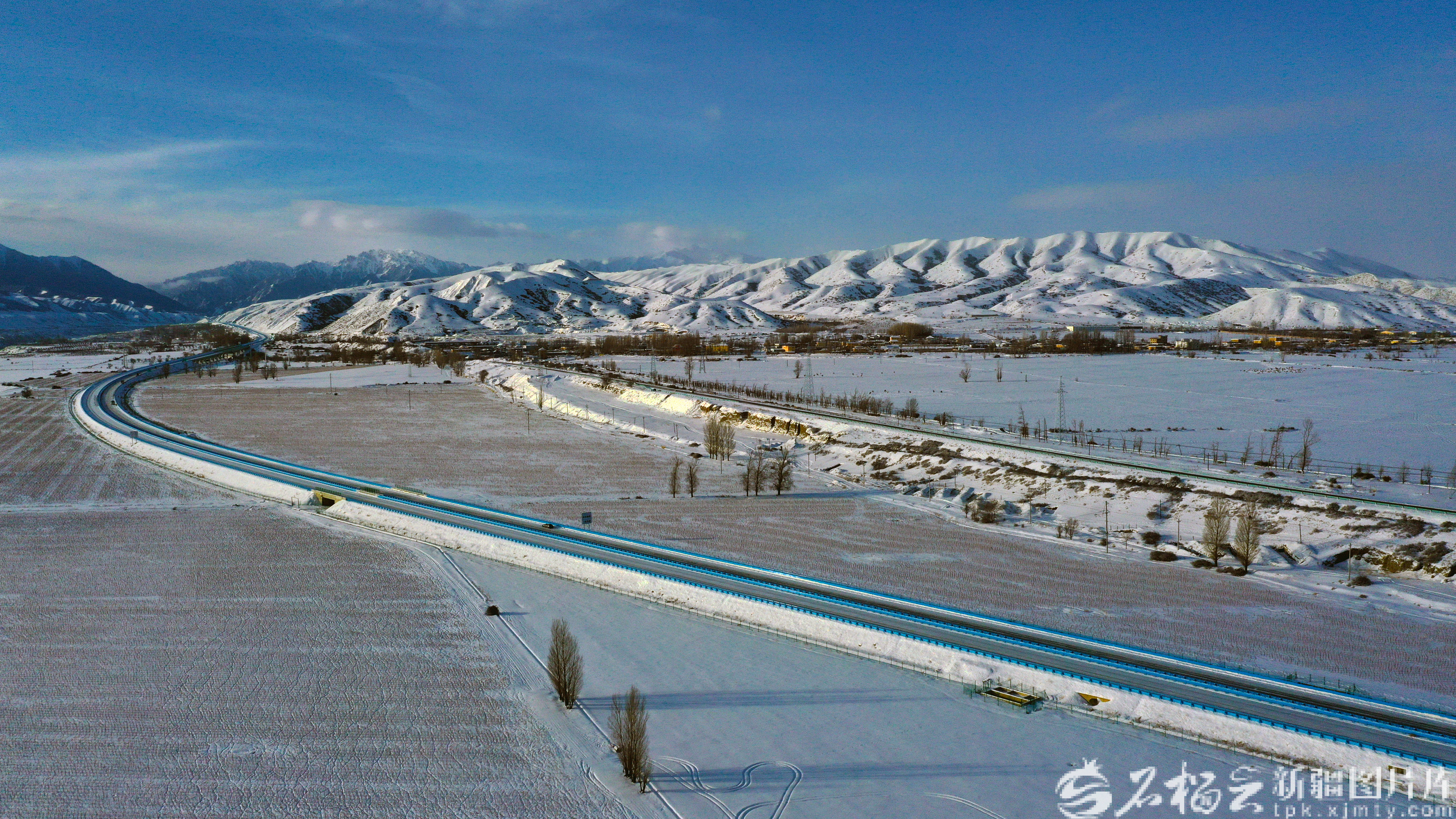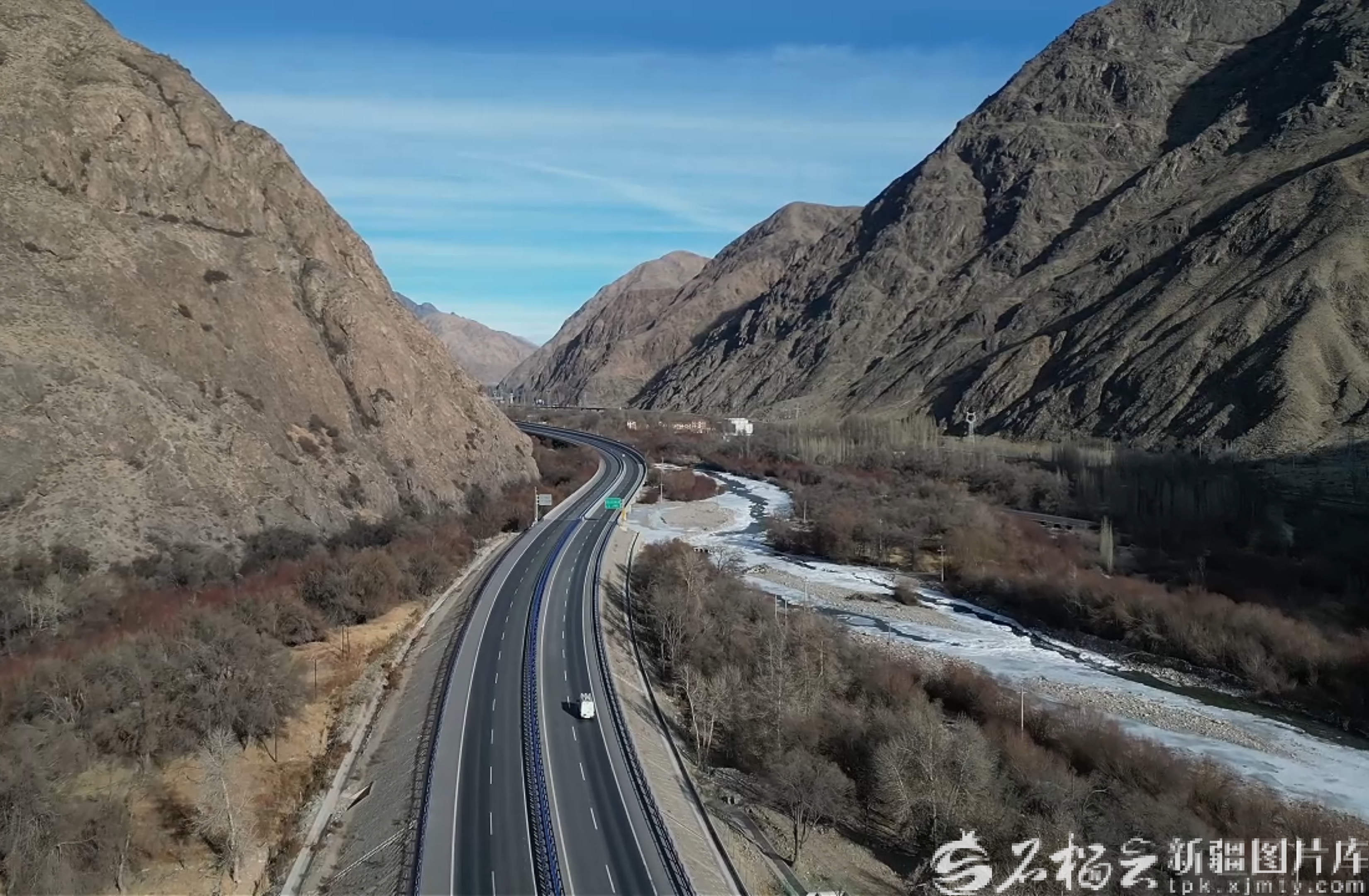 12月26日,俯瞰乌尉高速公路和静段(无人机摄)。石榴云/新疆日报记者 韩亮摄