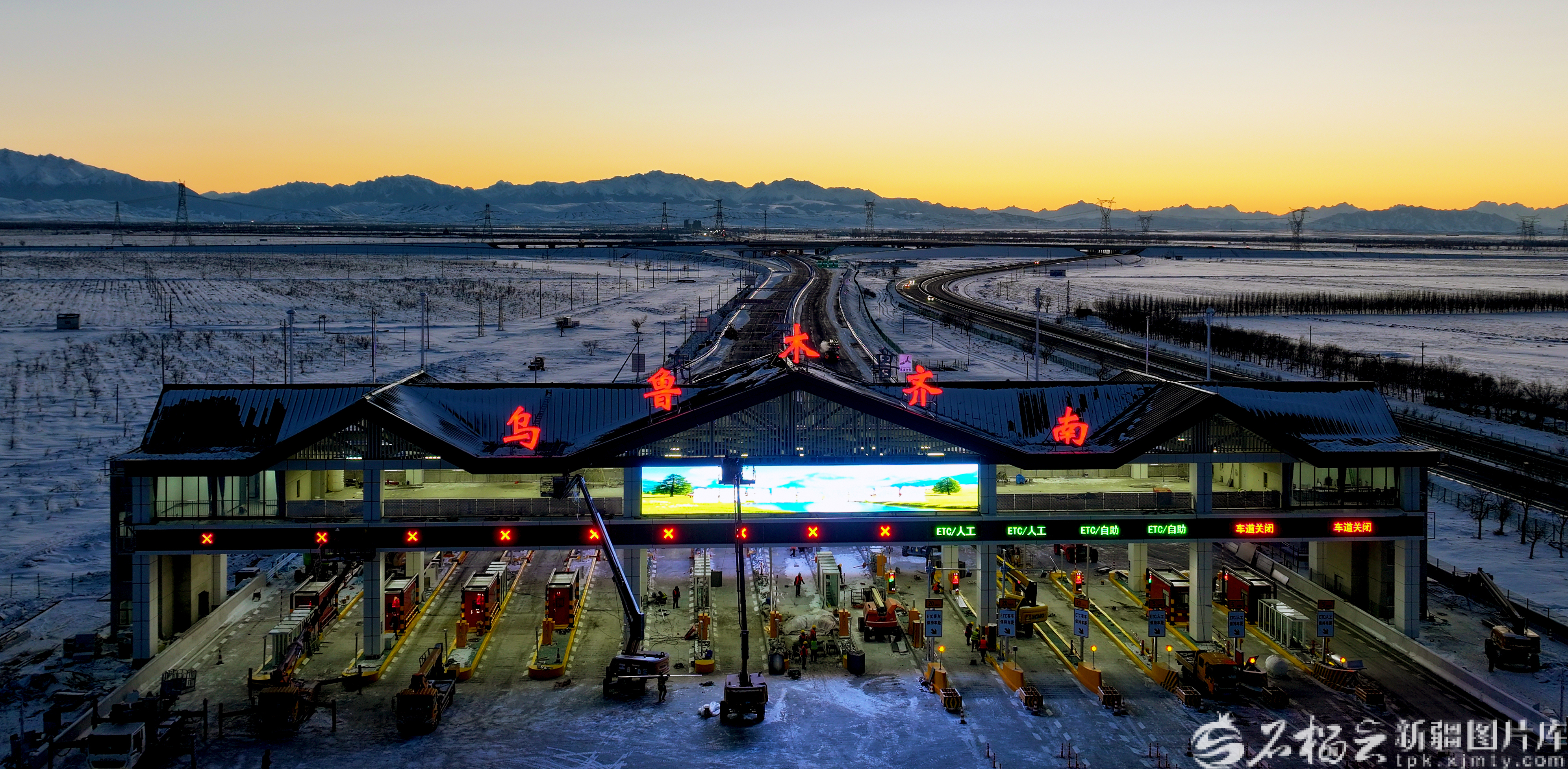 12月22日,乌尉高速公路乌鲁木齐南匝道收费站(无人机摄)。石榴云/新疆日报记者 韩亮摄