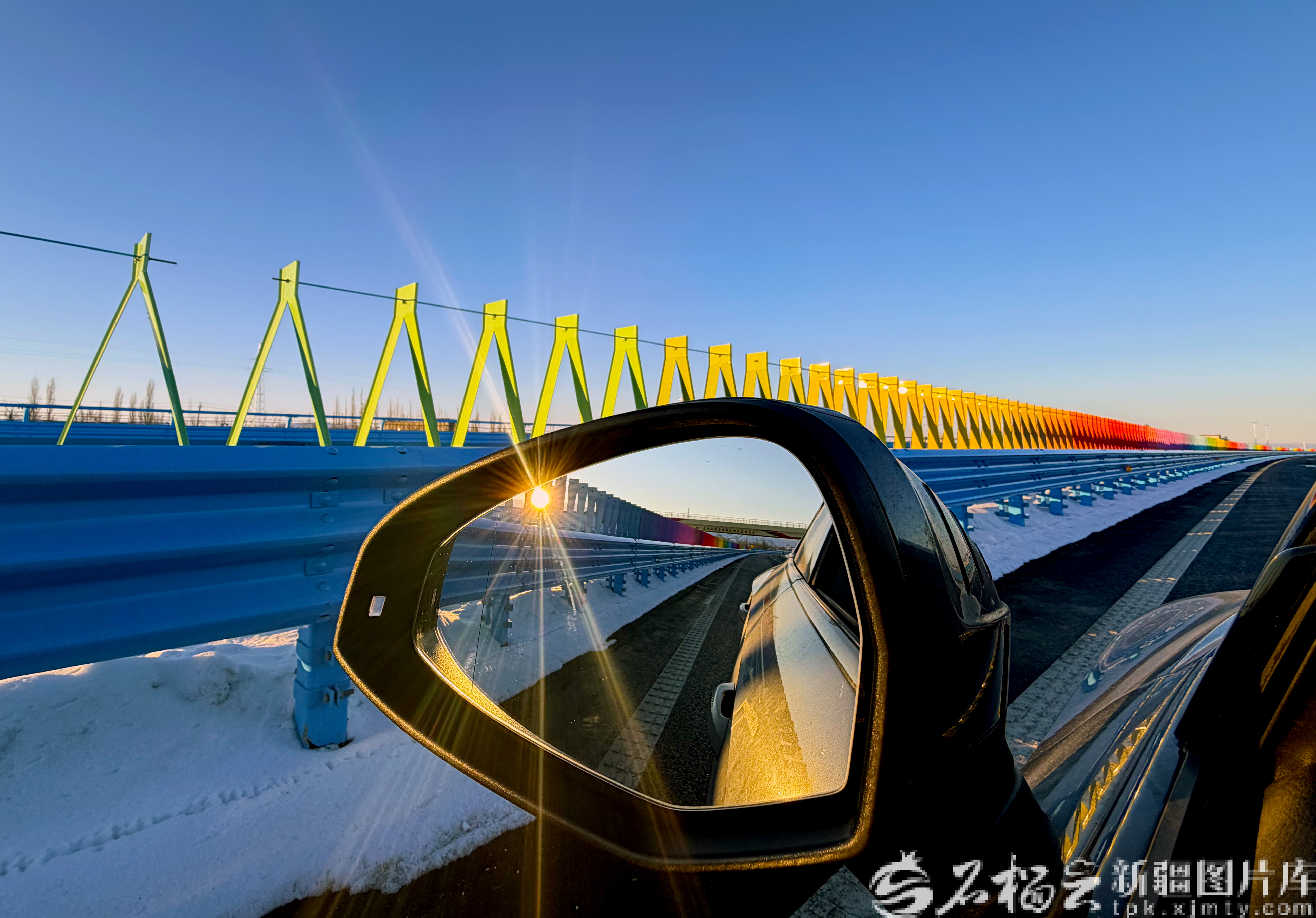 12月22日,乌尉高速公路上架设的彩虹隔离板。石榴云/新疆日报记者 韩亮摄