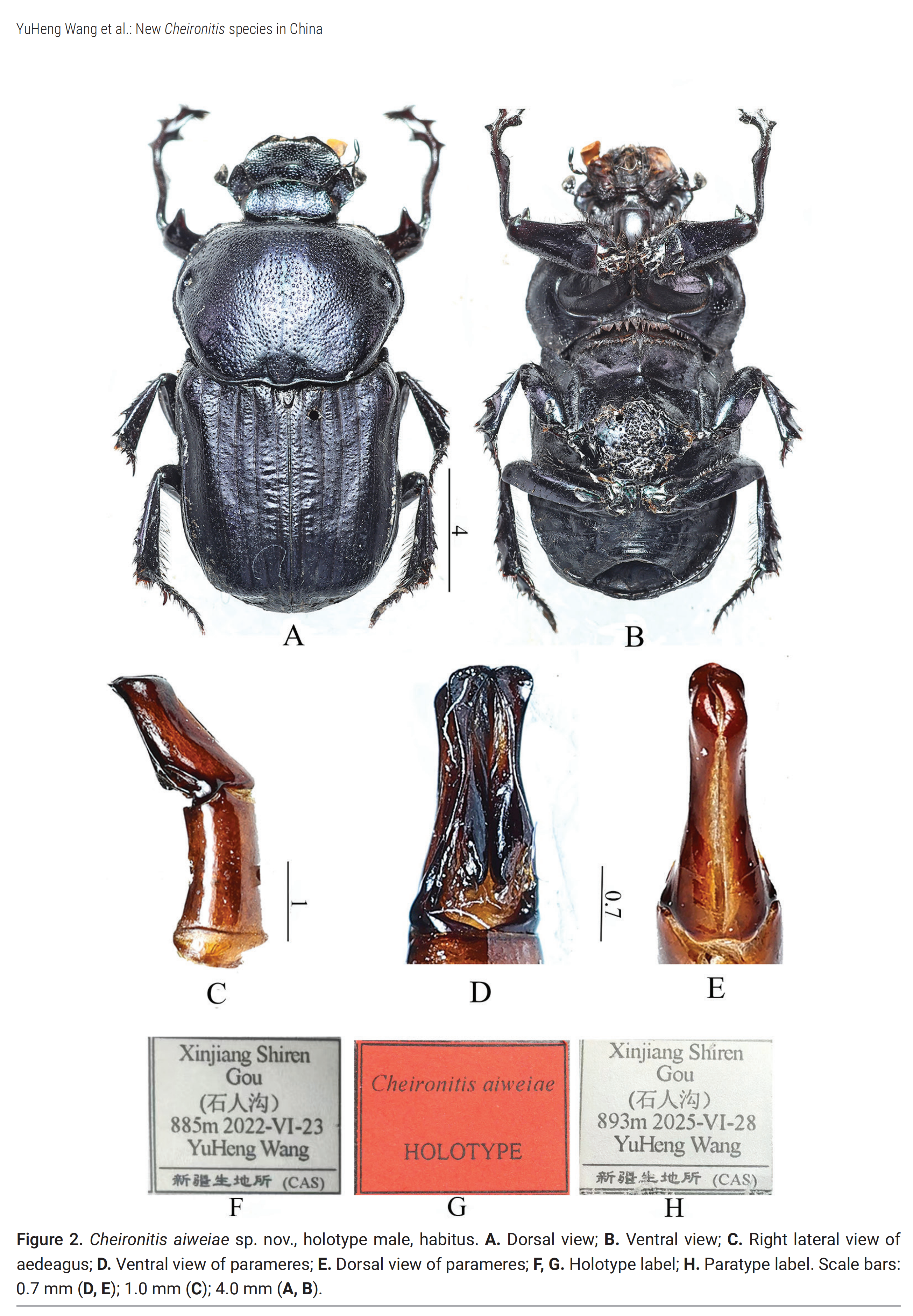 为验证王昱衡的猜想,学校科学老师建议联系中国科学院新疆生态与地理研究所生物学博士张鑫对标本进行进一步分析、鉴定。通过外部形态比对和国际专家确认,最终认定其为手蜣螂属(Cheironitis)的一个新物种。