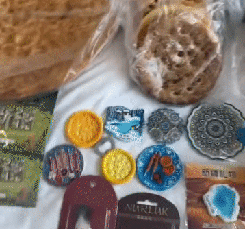 作为冰箱贴爱好者,她精心挑选了十多个富有新疆特色的款式;又因新疆畜牧业兴盛,她还选购了柔软实用的羊毛袜、小挂件等制品。而最令她倾心的,还是新疆的标志性美食——馕,尝过之后很是喜爱,索性将大大小小九个口味的馕都打包带回。这些物品,不仅带着新疆的风味与温度,更以实用和纪念的双重意义,把旅途的记忆妥帖收藏。