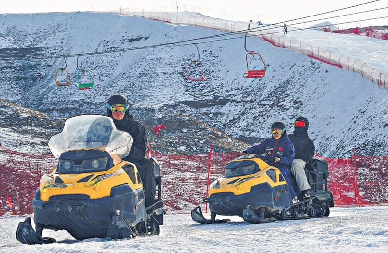 1月13日,游客在乌什县奥特贝希乡泉域星空滑雪场体验雪地摩托,感受雪中速度与激情。史启发摄
