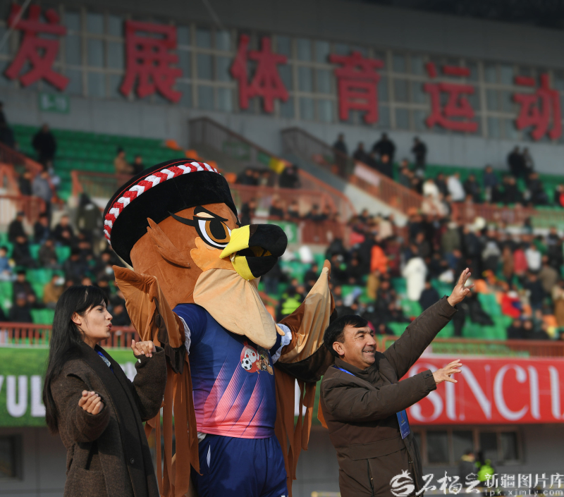 2025年12月5日,在“喀什杯”足球超级邀请赛现场,演员扮演成“帕米尔雄鹰—阿米尔”吉祥物,为球队呐喊助威。(资料图)