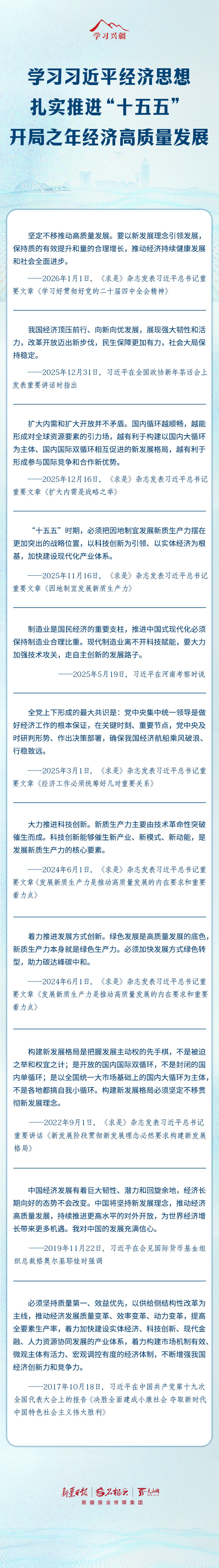 锐始者必图其终,成功者先计于始。2026年是“十五五”开局之年,开好局起好步对今后工作具有重要意义。今天,让我们一起学习领悟习近平经济思想,扎实推进经济高质量发展。