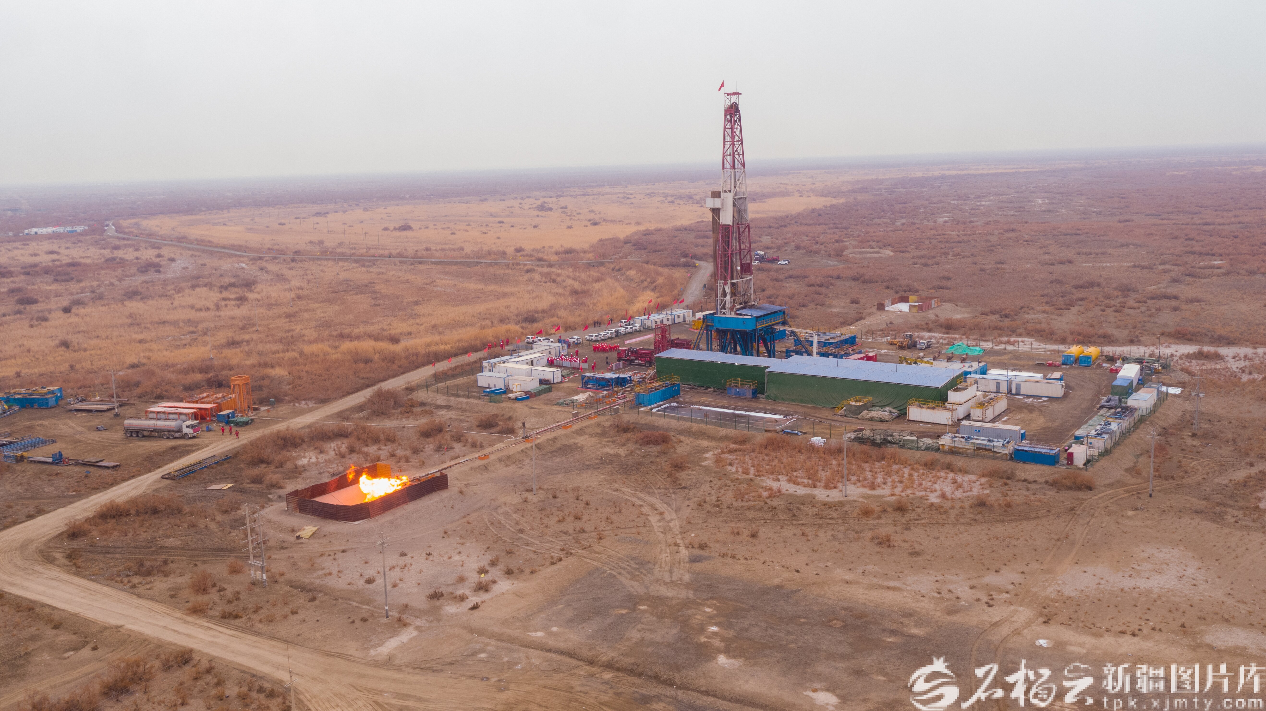 2020年1月,塔里木油田轮探1井在测试油气。塔里木油田供图