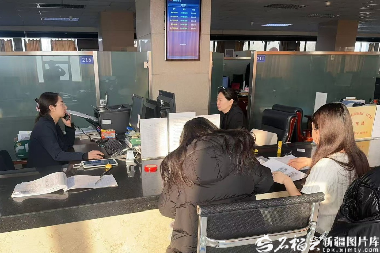 2月4日,乌鲁木齐市米东区政务服务中心大厅,市民在办理业务。詹新庆摄