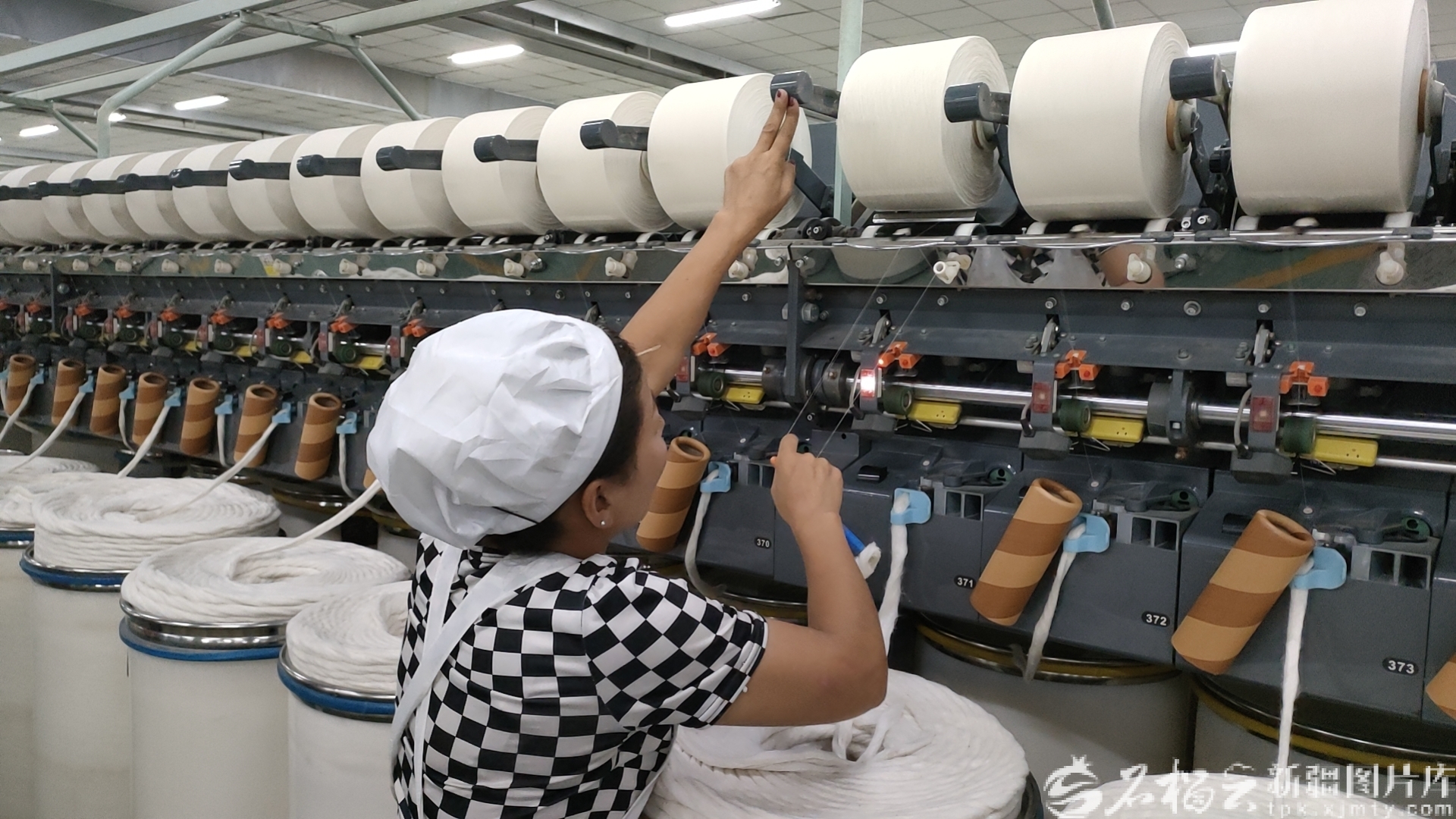 库车市国家现代农业产业园库车利华纺织有限公司车间,纺织工人正在工作。图/库车市国家现代农业产业园提供