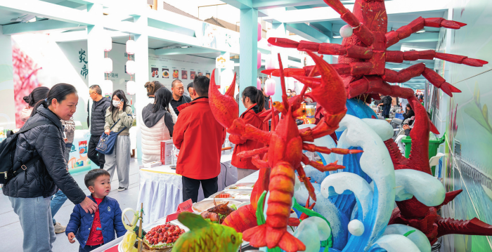 消费者在武汉市举办的2025年“中华美食荟”湖北潜江摊位参观(2025年3月17日摄)肖艺九摄/本刊