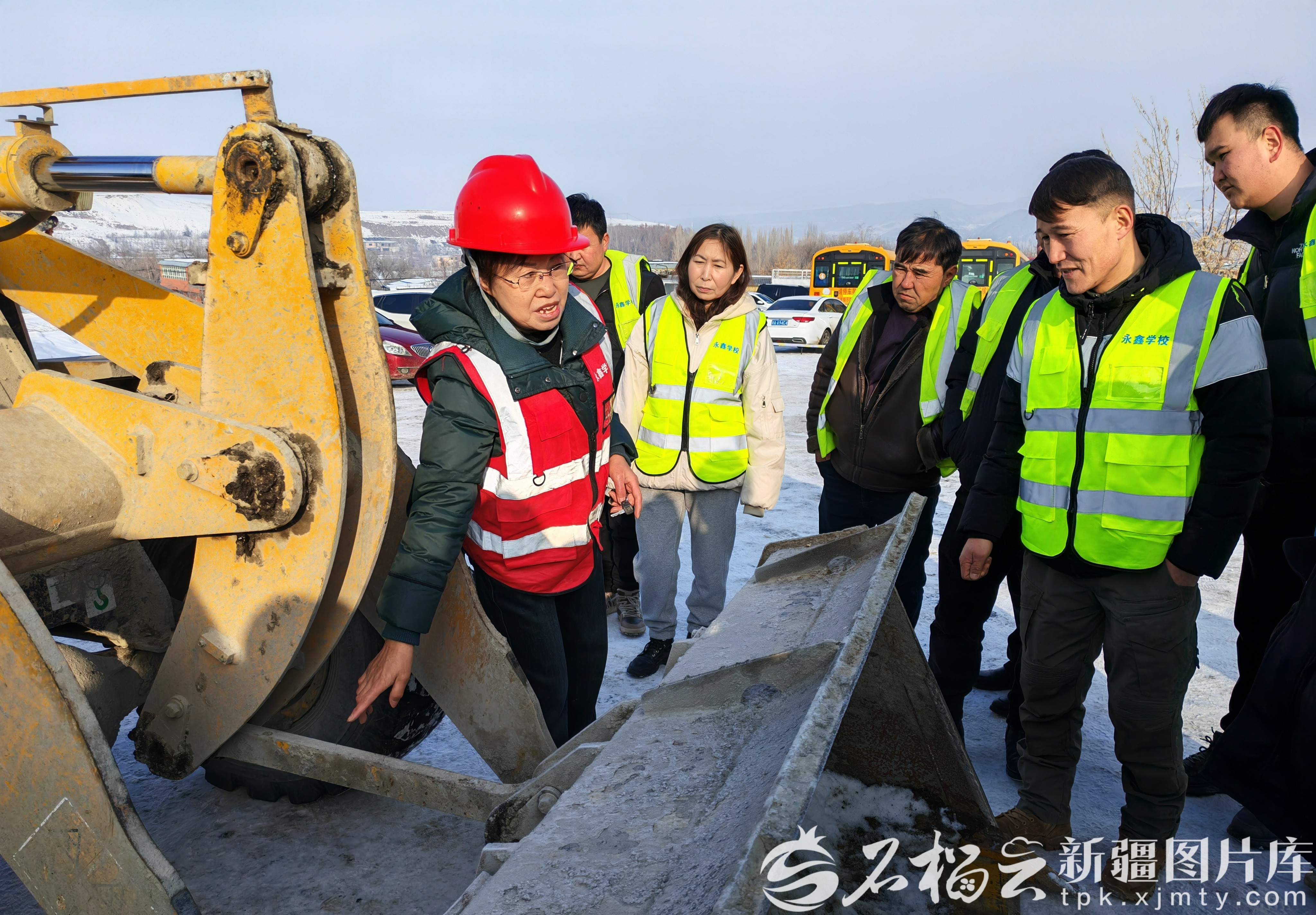 1月14日,由乌鲁木齐市水磨沟区人力资源和社会保障局、石人子沟街道办事处和乌鲁木齐市永鑫职业培训学校联合举办的挖掘铲运和桩工机械司机职业技能培训班在石人子沟村委会启动,图为老师在给学员介绍装载机的规范操作方法。石榴云/新疆日报记者 秦梅花摄