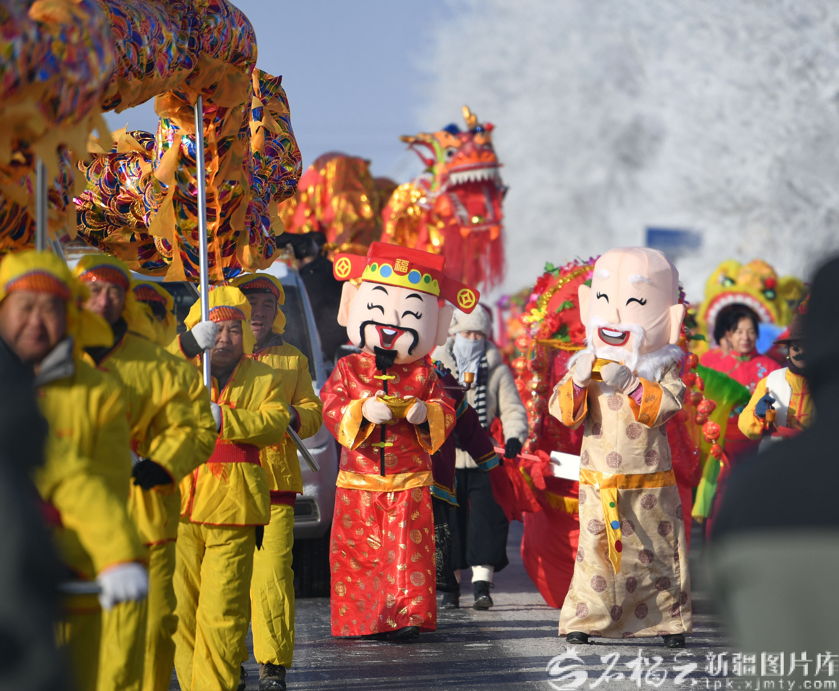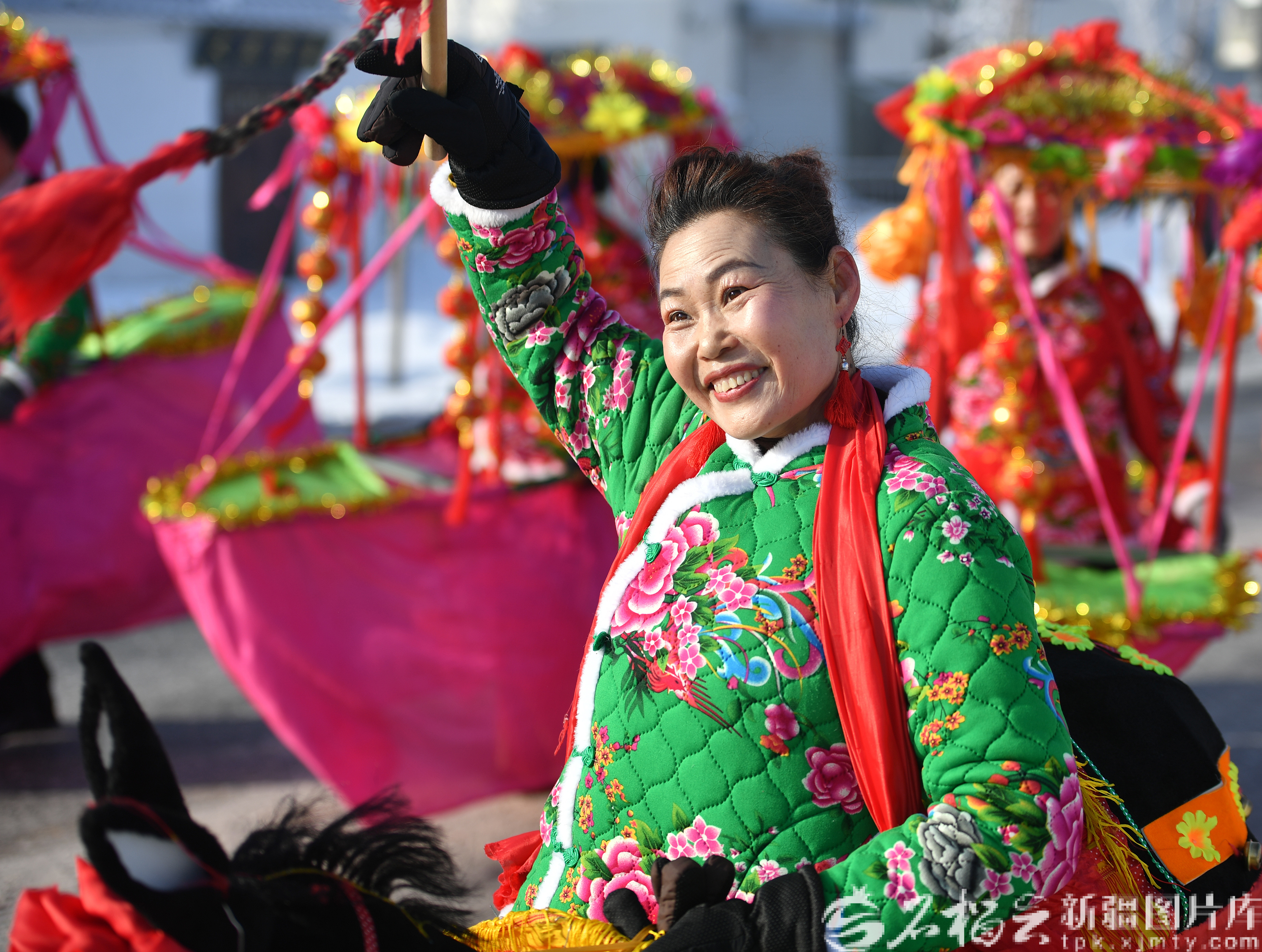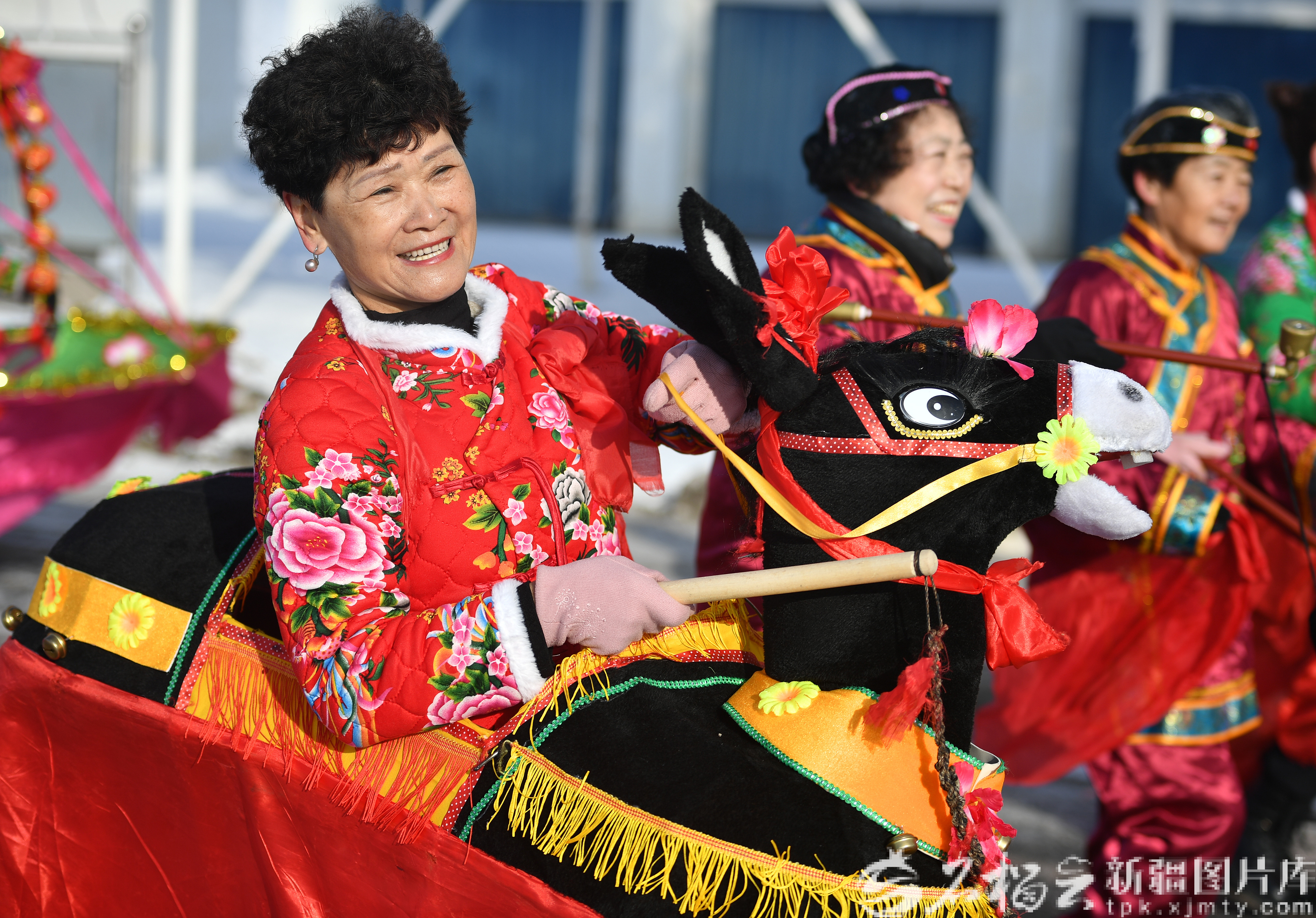 2月9日,村民在乌鲁木齐高新技术产业开发区(新市区)六十户乡六十户东街表演社火。